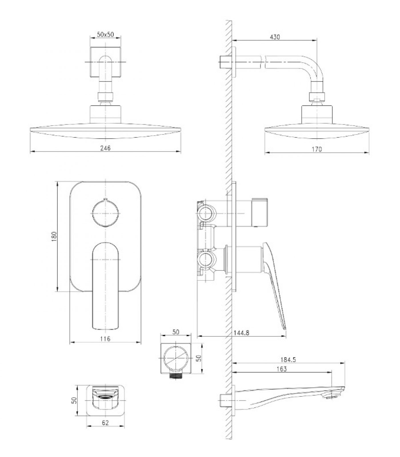 Душевой комплект Lemark Allegro LM5922CW, встраиваемый, однорычажный, излив, тропический душ, лейка