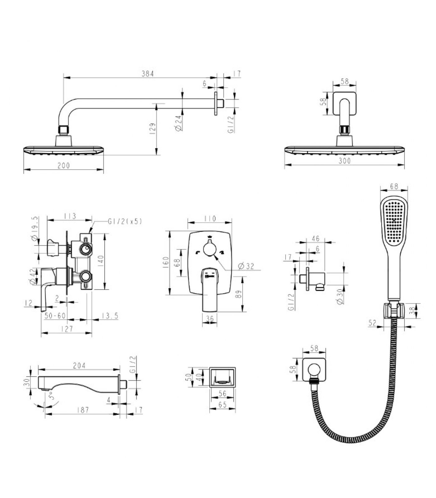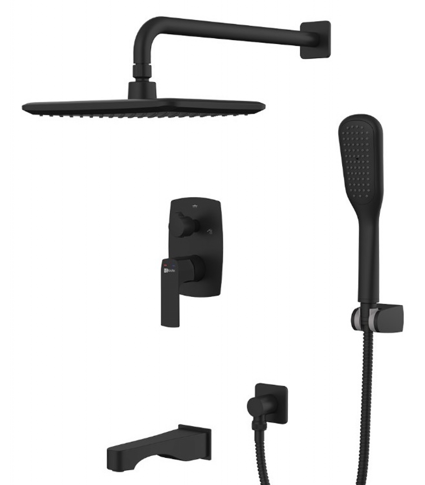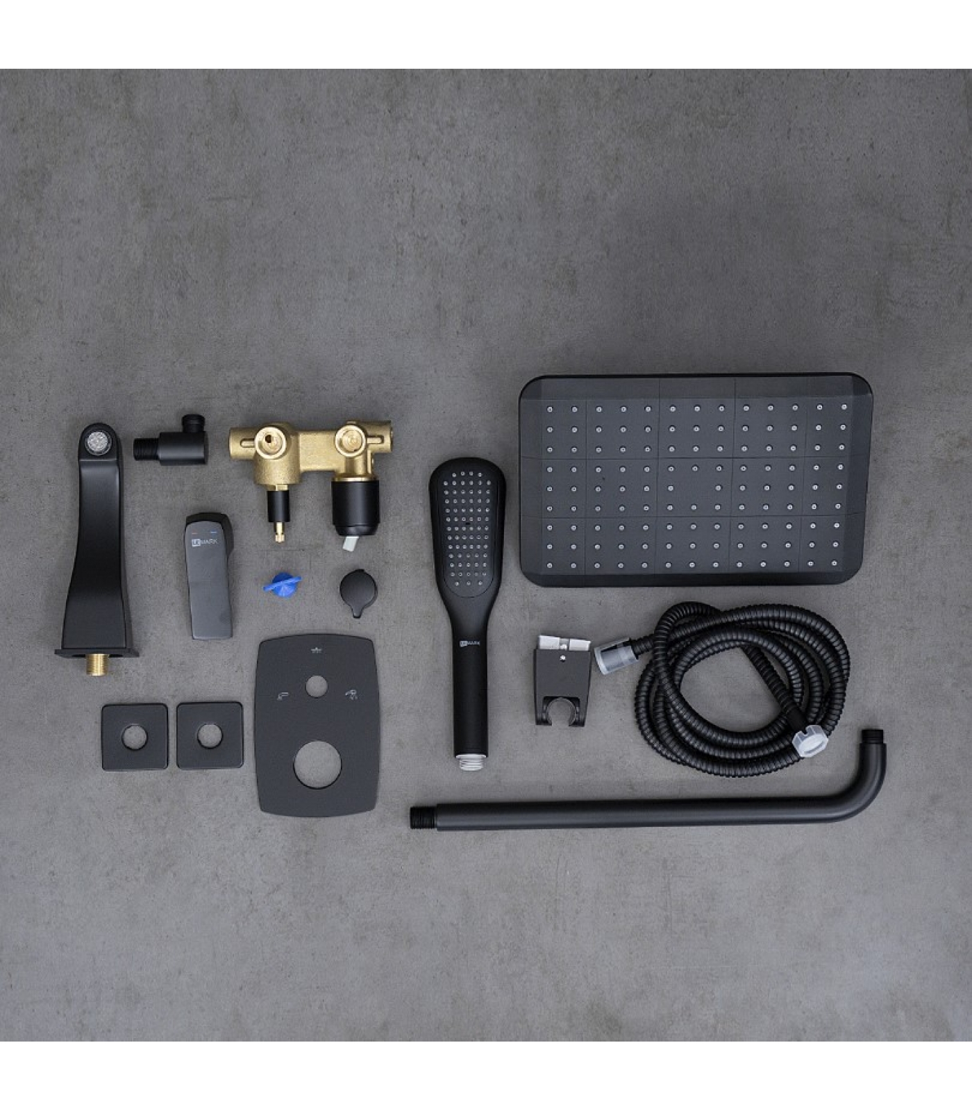 Душевой комплект Lemark Ursus LM7222BL встраиваемый, тропический душ, излив, ручной душ, черный