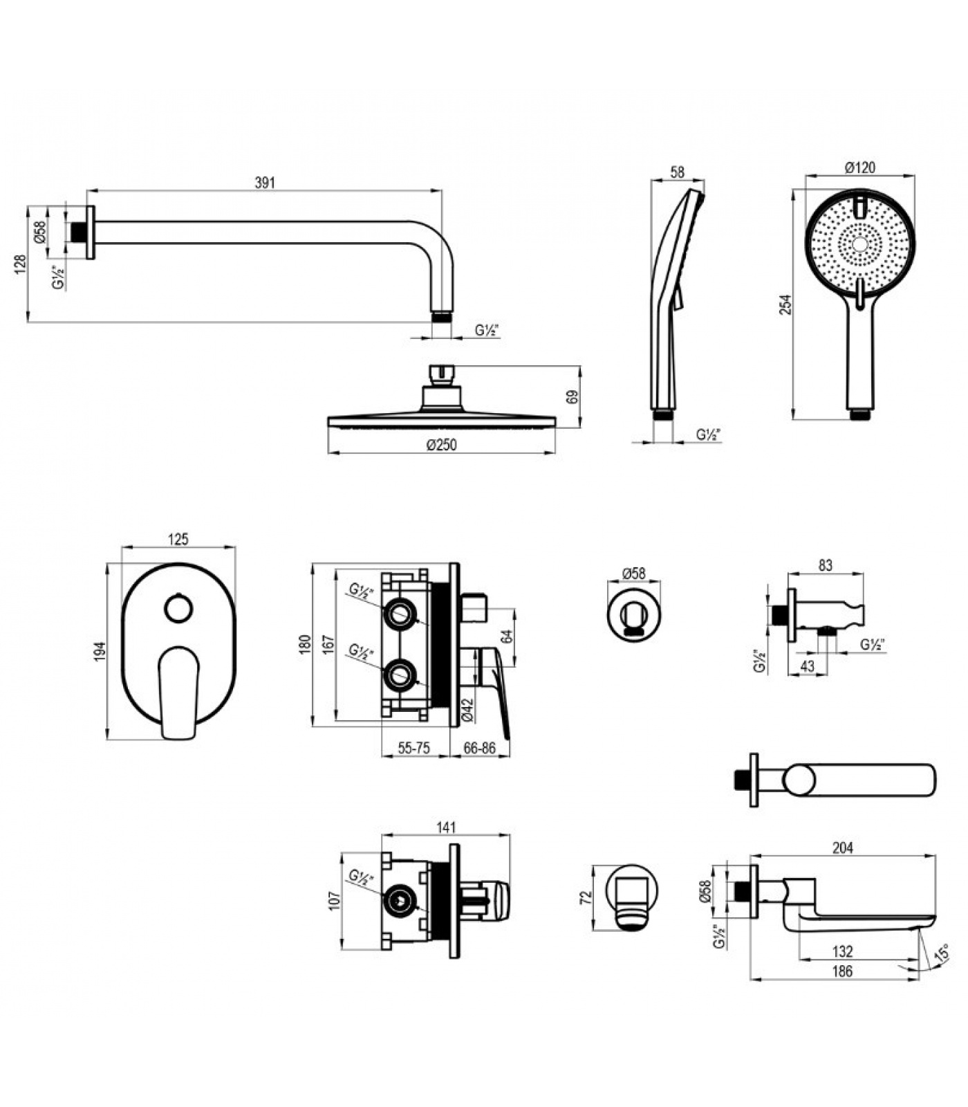 Душевой комплект Lemark Verba LM11422C, встраиваемый, однорычажный, излив, тропический душ, лейка