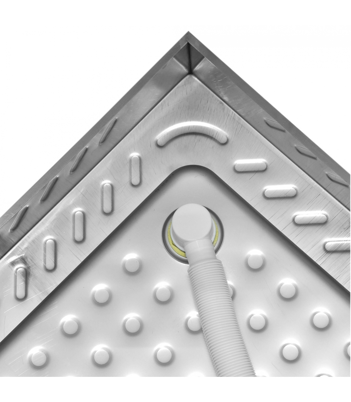 Нержавеющая сталь марки AISI 304. Толщина 1-2 мм., поверхность матовая. Размеры: 900х900х125 мм. Комплектация: слив.