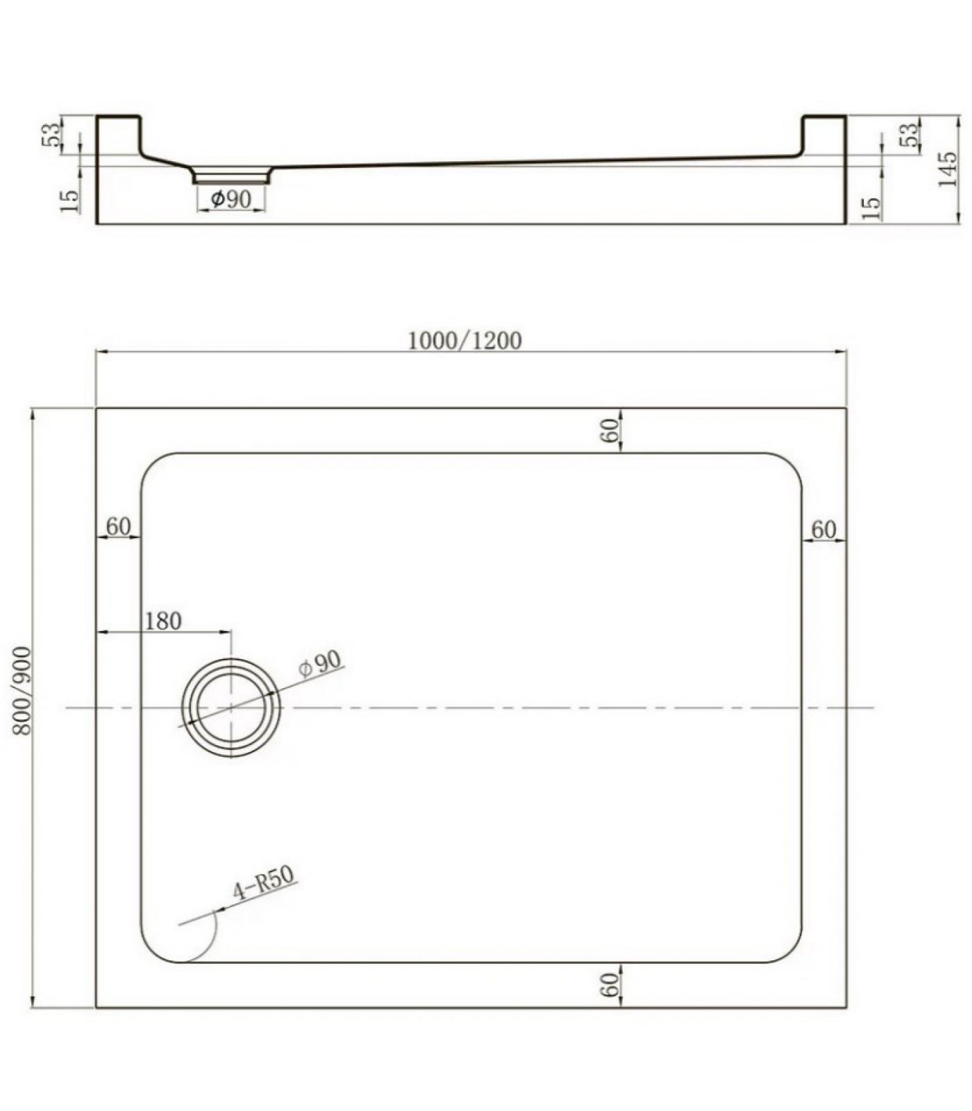 Душевой поддон Veconi прямоугольный Tezeo acrylic 1200x900x150 мм