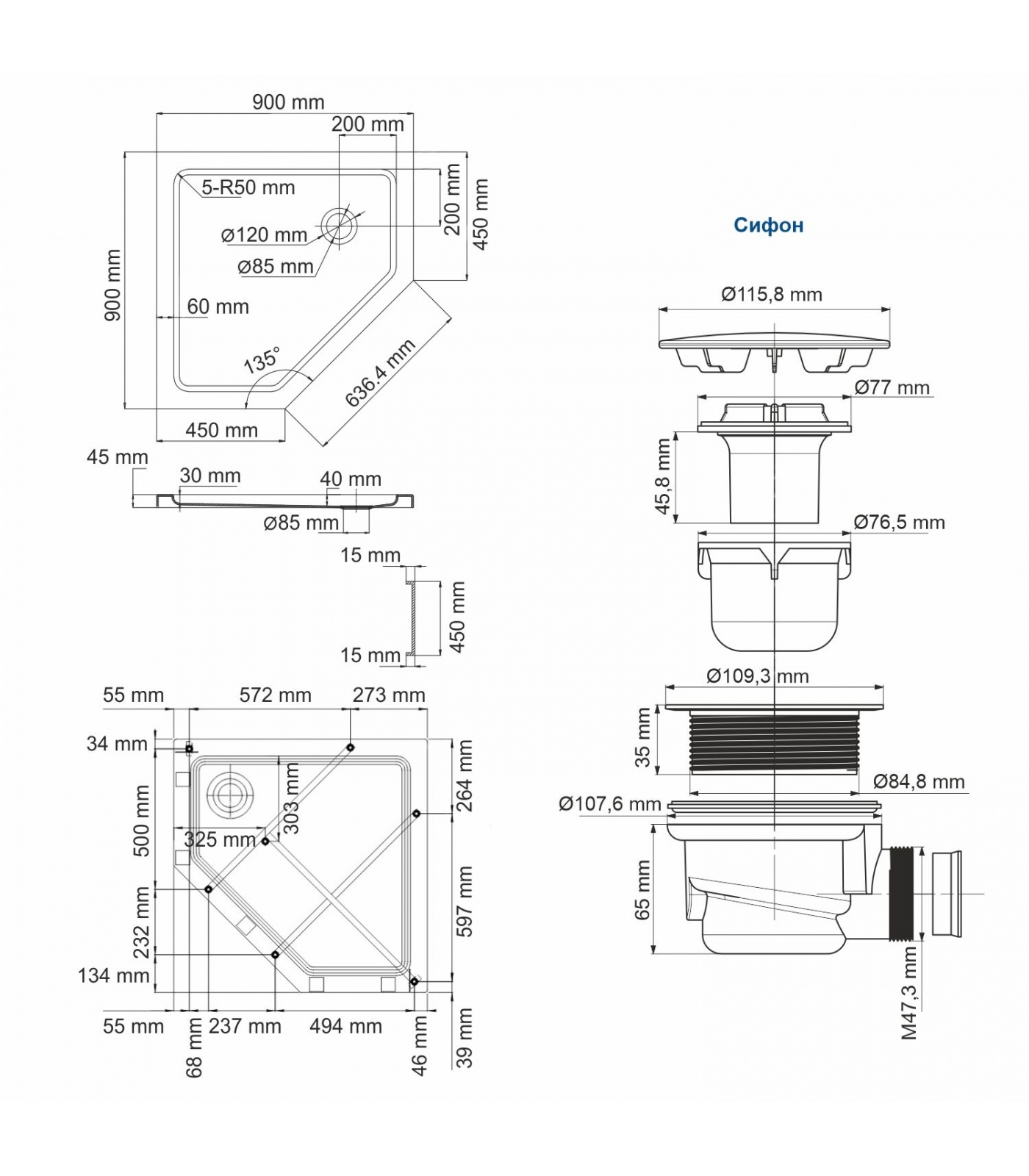 Пентагональный душевой поддон Isen 26T11 с антискользящим покрытием. Главная функция устройства - отвод и сбор воды. Во время водных процедур вода постоянно стекает на пол и чтобы душевая кабина работала в нормальном режиме, нужен поддон. Подходящую модель найти несложно из-за большого выбора устройств.