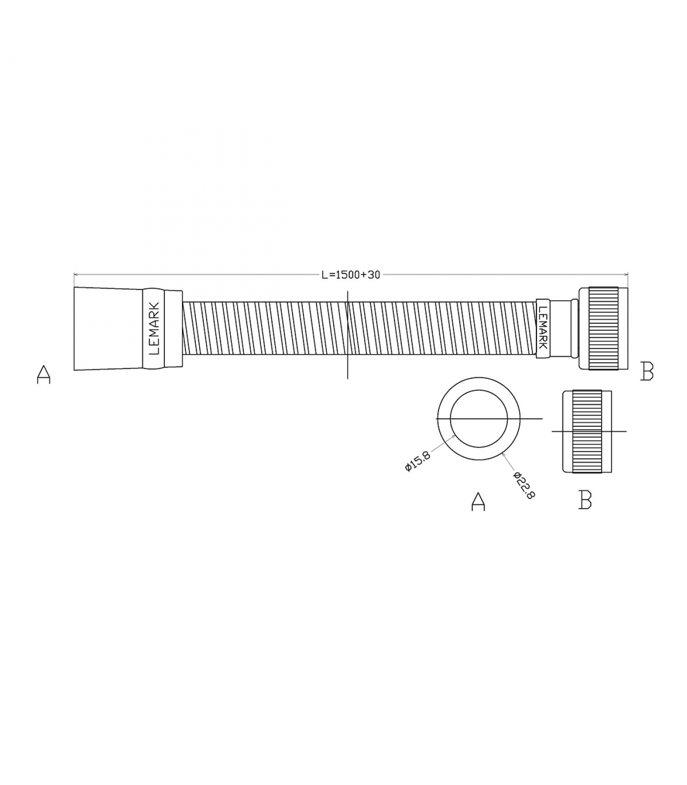 Шланг оборудован конусообразными фитингами, которые обеспечивают надежное и герметичное соединение с вашей душевой системой.
