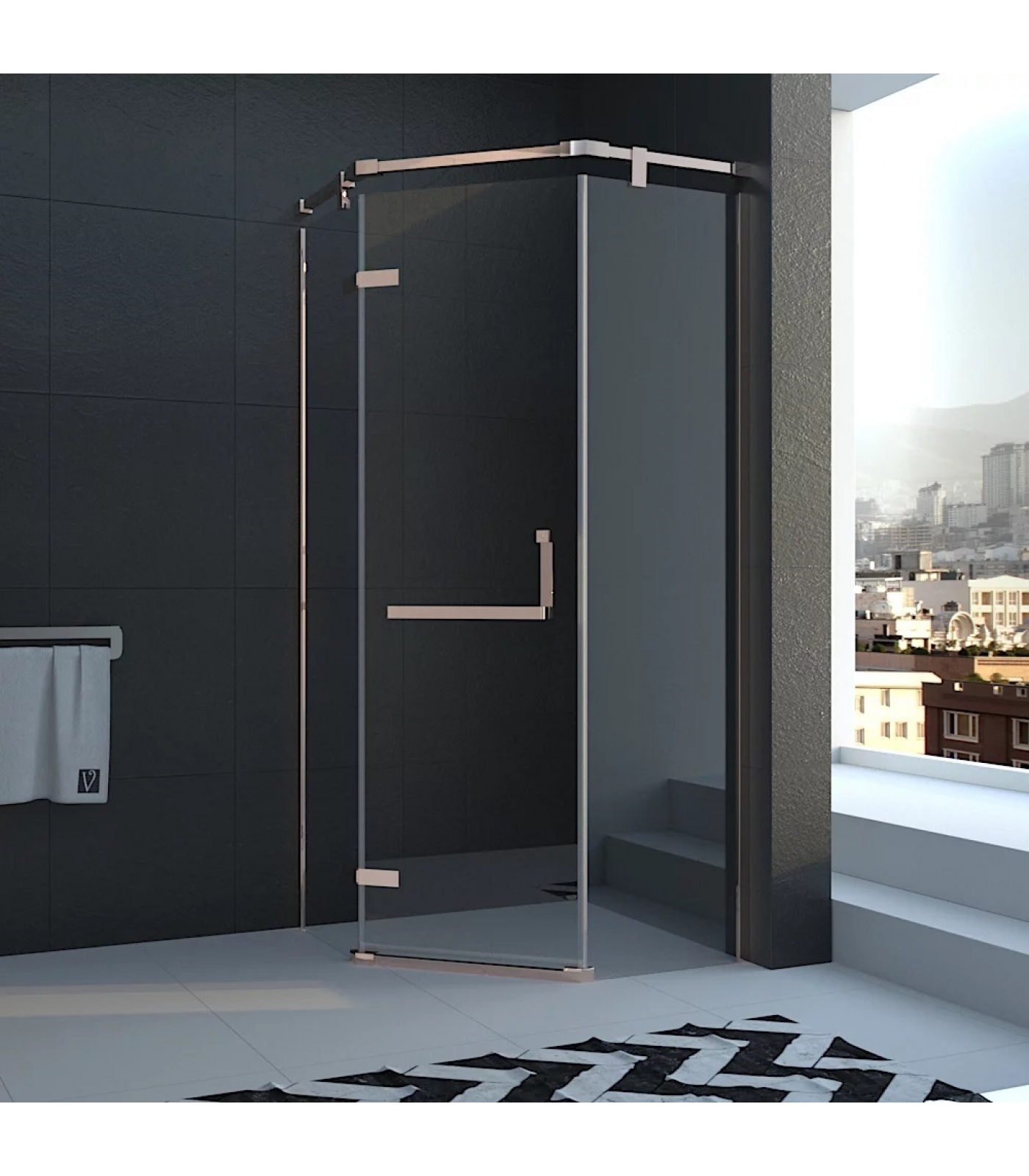Душевой уголок Veconi Rovigo RV-37. Душевой уголок пятиугольный. Одностворчатая распашная дверь. На петлях из нержавеющей стали. Стекло закалённое безопасное 8 мм. Магнитные уплотнители обеспечивают герметичное закрывание двери, плотно прилегая к профилю. Профиль из нержавеющей стали цвет - бронза. Регулируемые пристенные профили - 20 мм. Ручка открывания двери из нержавеющей стали в цвет бронза. Универсальная установка открытия двери. Высота стекла 195 см. Высота изделия 202 см.