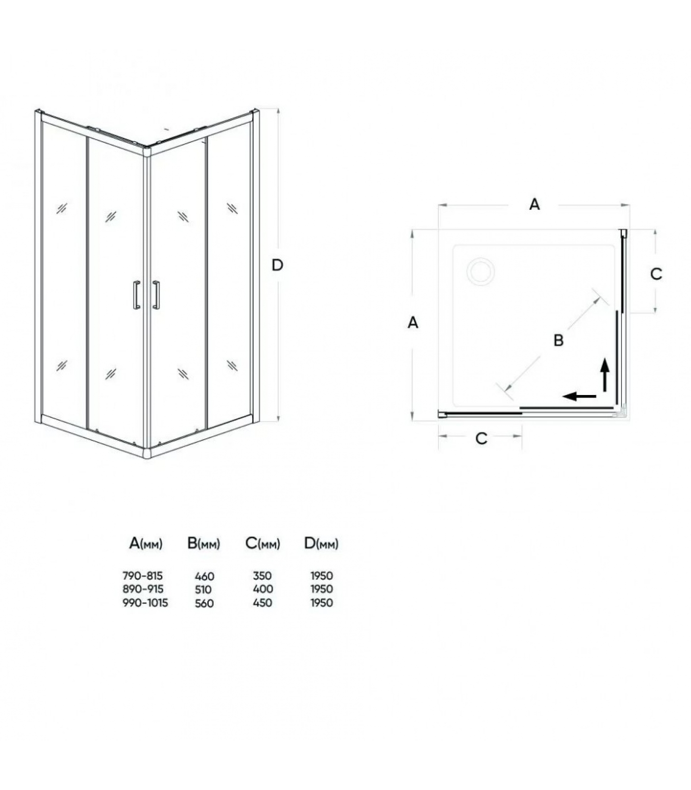 Душевой угол Veconi раздвижной квадратный RV11-100-01-C5 1000x1000x1950,хром,прозрачное