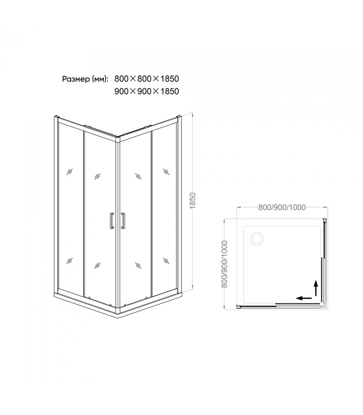 Душевой угол Veconi раздвижной квадратный RV11-90K-02-19C1 900x900x1950,хром,Pear