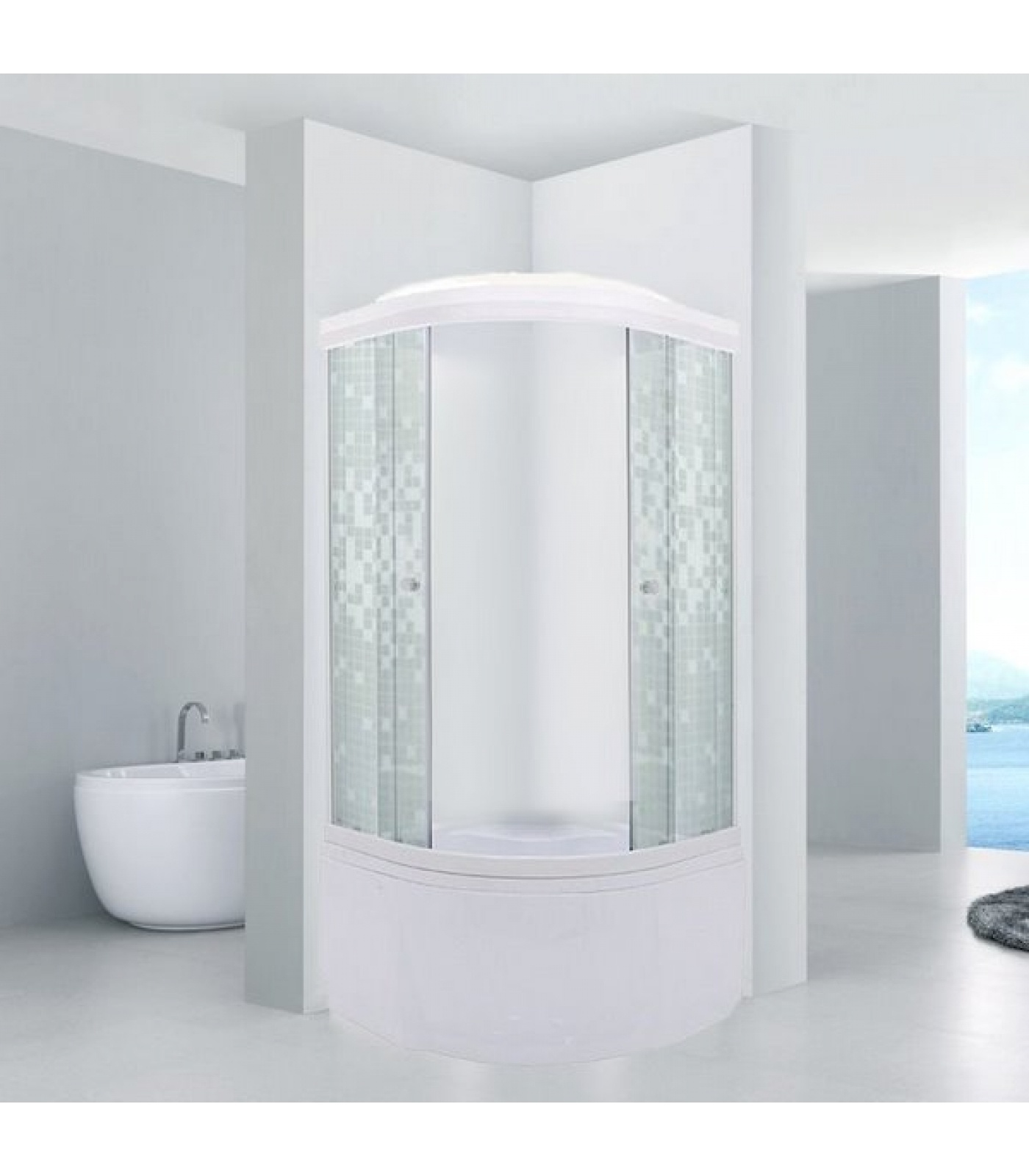 Душевой уголок Triton Стандарт Мозаика 90х90 Б четверть круга, глубокий поддон, белый (5мест+сифон)