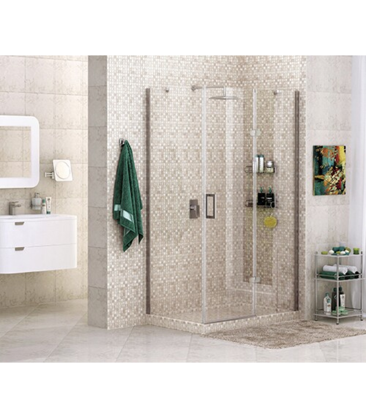 Закаленное прозрачное стекло 8 мм, Покрытие стекла WasserSchutz, Распашной механизм на петлях из латуни, Анодированный алюминиевый профиль 46 мм, Ручка двери из сплава металлов, Регулирующий профиль до 13 мм, Силиконовый уплотнитель двери с магнитным замком, Силиконовые уплотнители