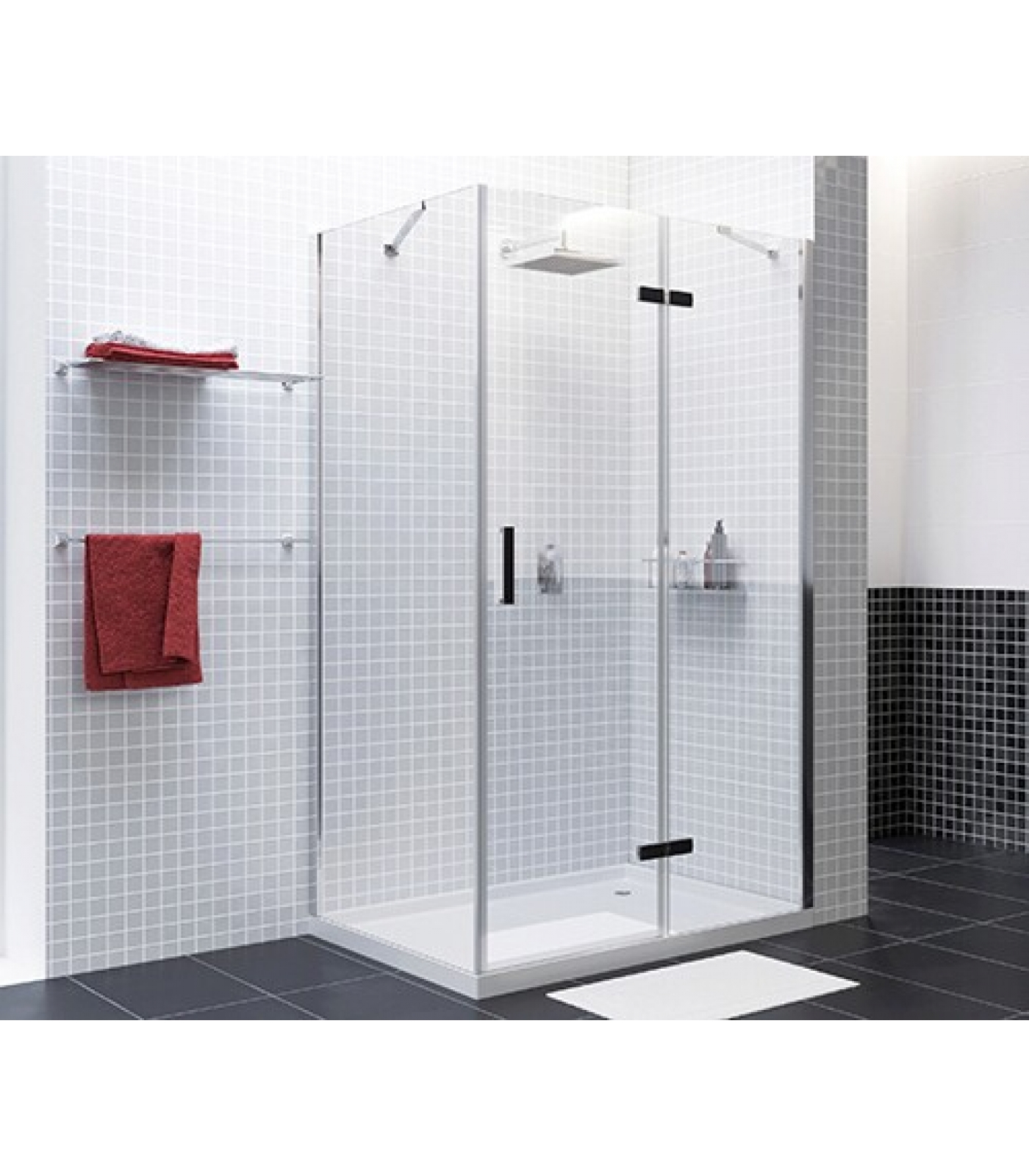 Закаленное прозрачное стекло 8 мм, Покрытие стекла WasserSchutz, Распашной механизм на петлях из латуни, Анодированный алюминиевый профиль 46 мм, Ручка двери из сплава металлов, Регулирующий профиль до 13 мм, Силиконовый уплотнитель двери с магнитным замком, Силиконовые уплотнители