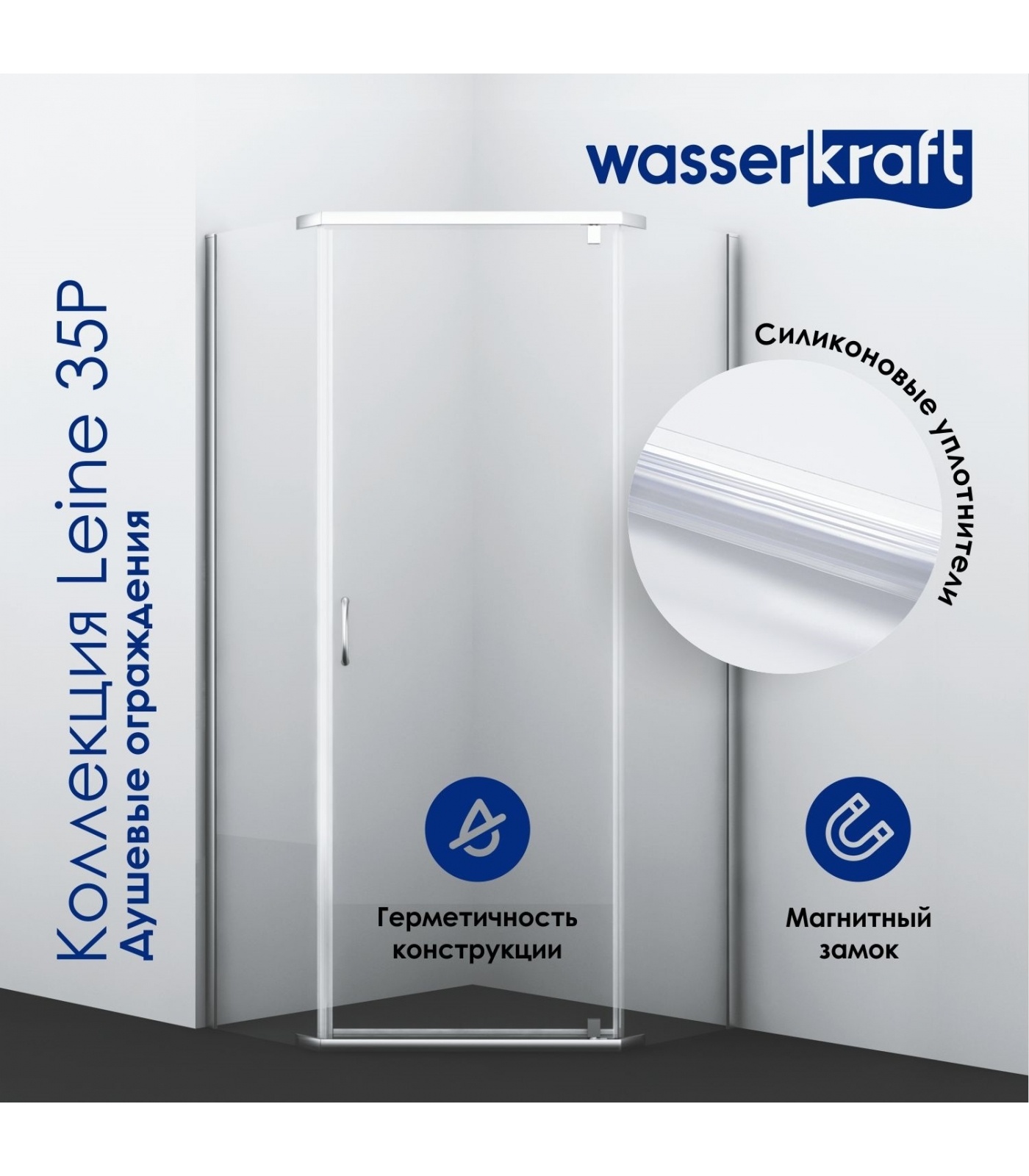 WasserKraft Leine 35P11 Душевой уголок пентагональный 90x90 см, с распашной дверью.