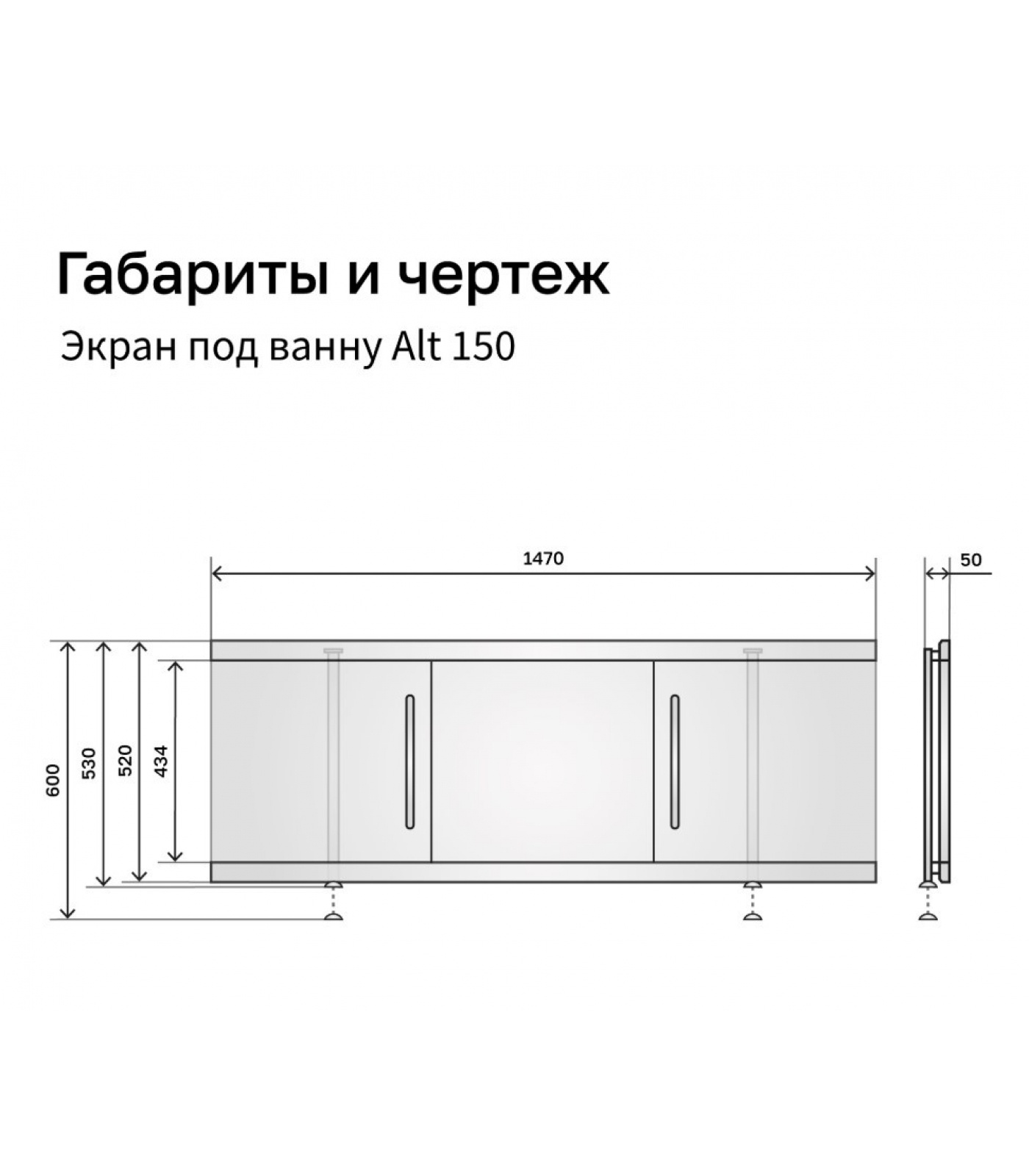 Дверцы экрана для ванны Альт 150 открываются аналогично современному шкафу-купе, то есть разъезжаются в стороны по специальным направляющим. Такое решение особенно актуально для комнат небольшого метража, так как помогает экономить свободную площадь помещения. Ширины модели вполне достаточно, чтобы полностью закрыть пространство под ванной длиной 1.5 м.