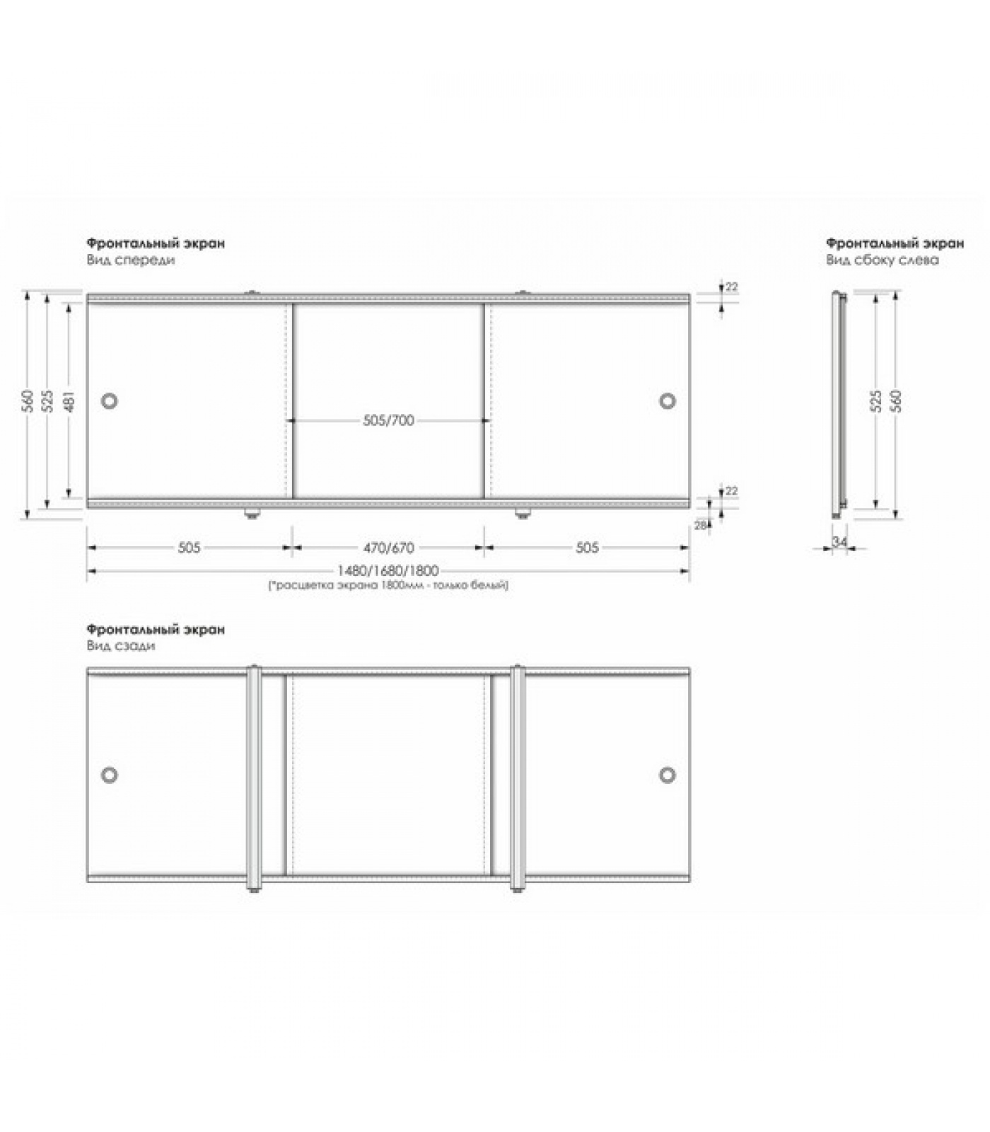 Особенность: возможность переноса ножек на внутреннюю часть экрана в зависимости от индивидуальных особенностей сантехнических коммуникаций.