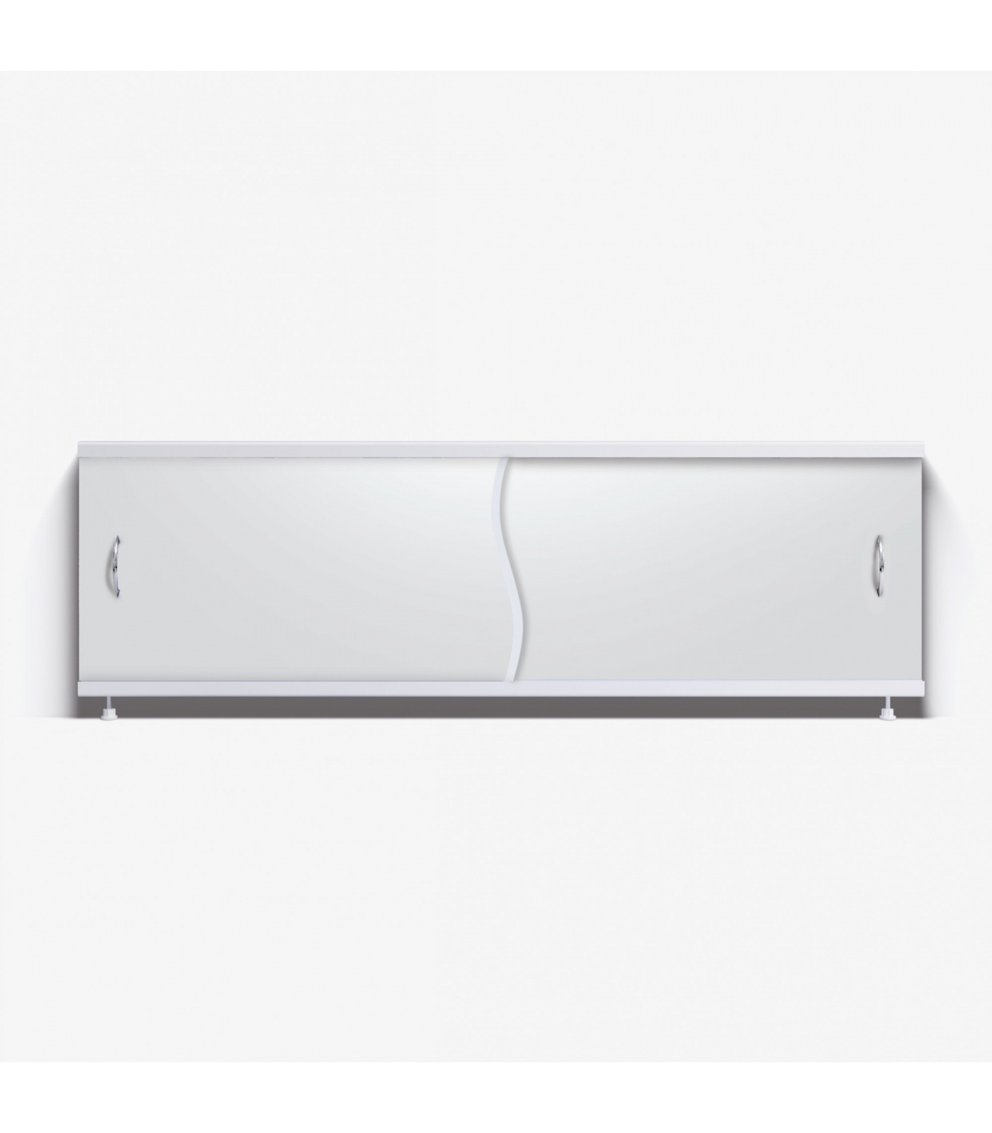 Экран для ванны с алюминиевой рамой, с регулировкой по высоте, с двумя раздвижными дверцами, цвет белый, ручки хромированные