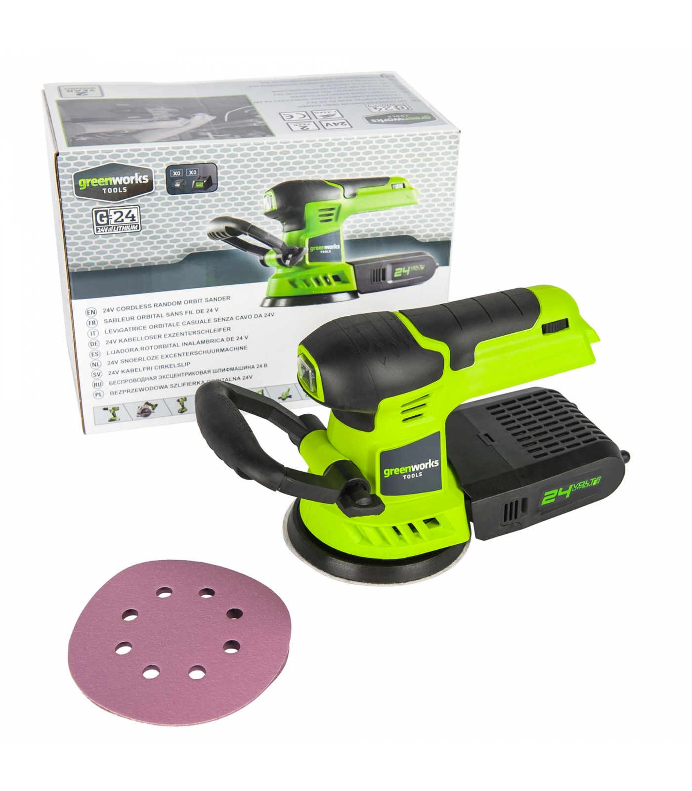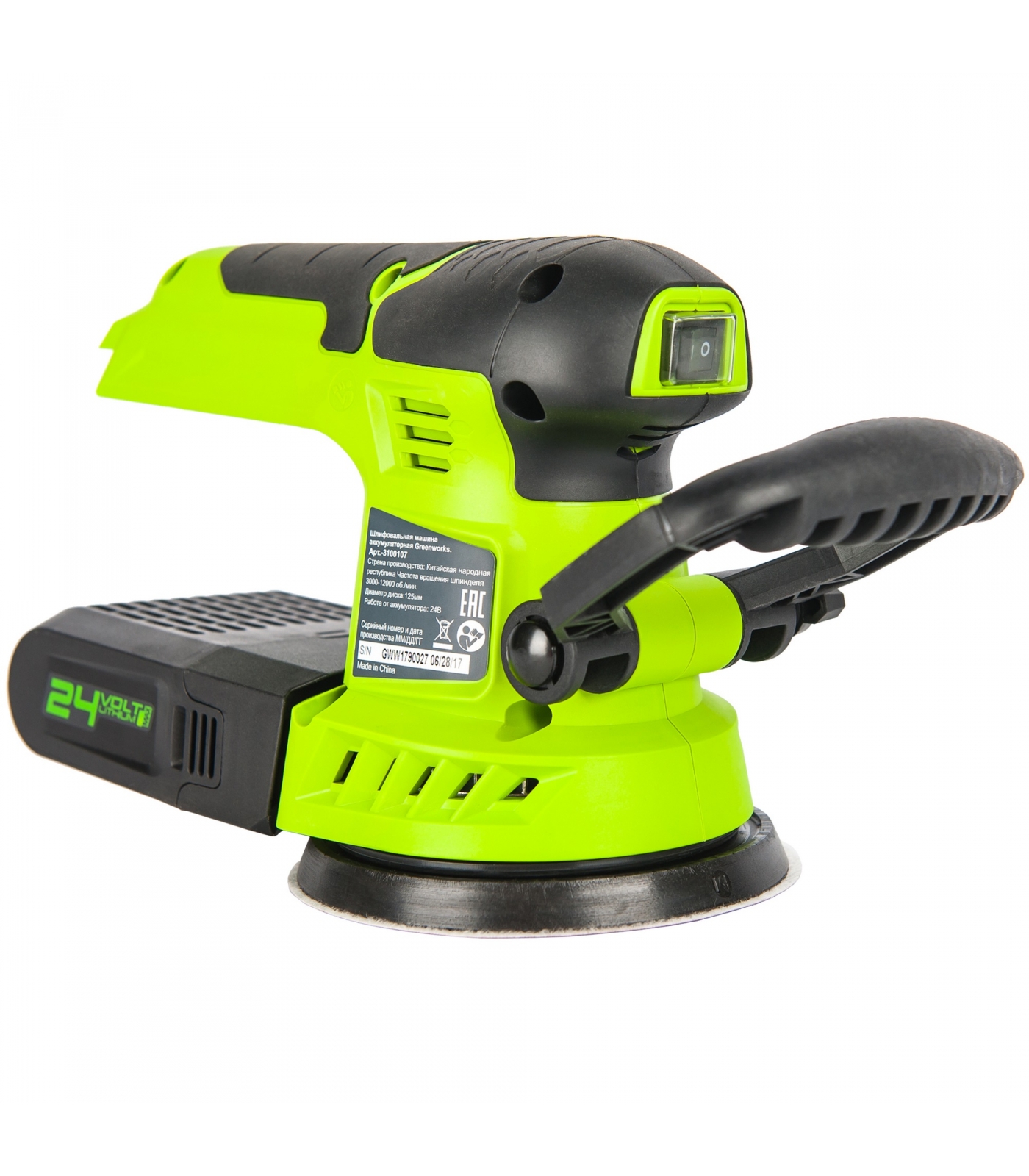Эксцентриковая шлифовальная машина, аккумуляторная Greenworks G24ROS (3100107), 24 V, без АКБ и ЗУ
