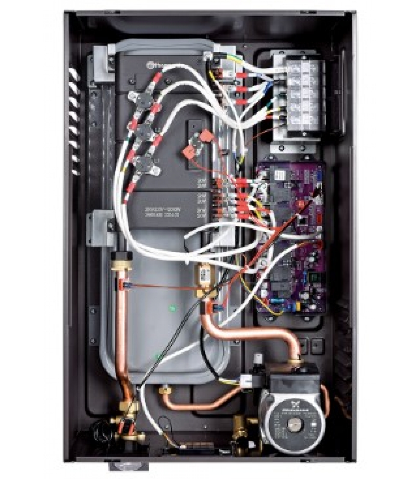 Надежный нагревательный модуль. Внутри котла установлен высокоэффективный теплообменник из алюминиево-магниевого сплава, отличающийся повышенной скоростью нагрева и надежностью. Сам теплообменник относится к типу сухого нагрева, который дополнительно защищен от накипи и коррозии, поскольку нагревательный элемент и вода разделены и контактируют напрямую. Качество теплообменника подтверждается отдельной гарантией – 4 года.