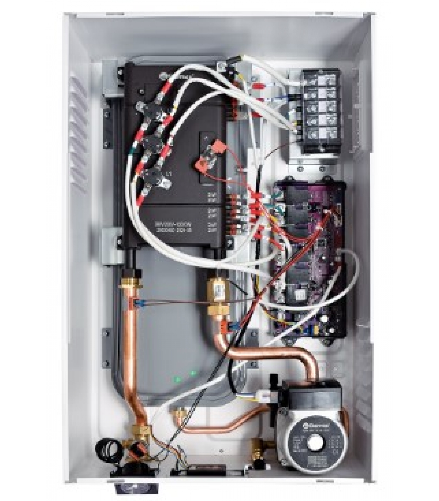 6 в 1. Отличительной особенностью отопительного котла Thermex Sonne является регулировка мощности, разбитая на шесть ступеней. Пользователю доступны варианты мощности 2, 4, 6, 8, 10 или 12 кВт. Настройка мощности производится через основную плату управления, и с помощью рычагов на плате можно ограничить максимальную мощность котла. При минимальной мощности котел способен обогревать помещение площадью до 50 м², а при увеличении – до 120 м². Также, электрический котел имеет универсальное подключение: к однофазной или трехфазной сети, что еще больше упрощает установку, настройку и эксплуатацию оборудования.