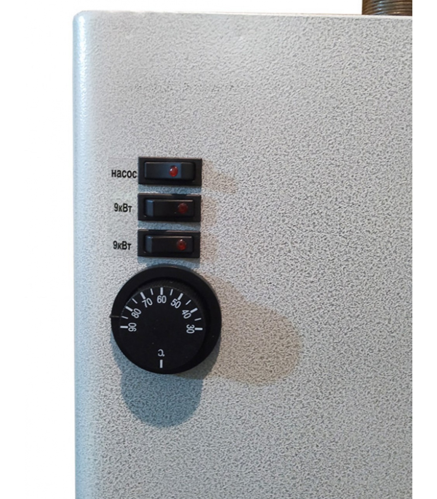 Электрокотлы оснащены встраиваемым пультом управления, предназначенным для регулирования температуры теплоносителя.