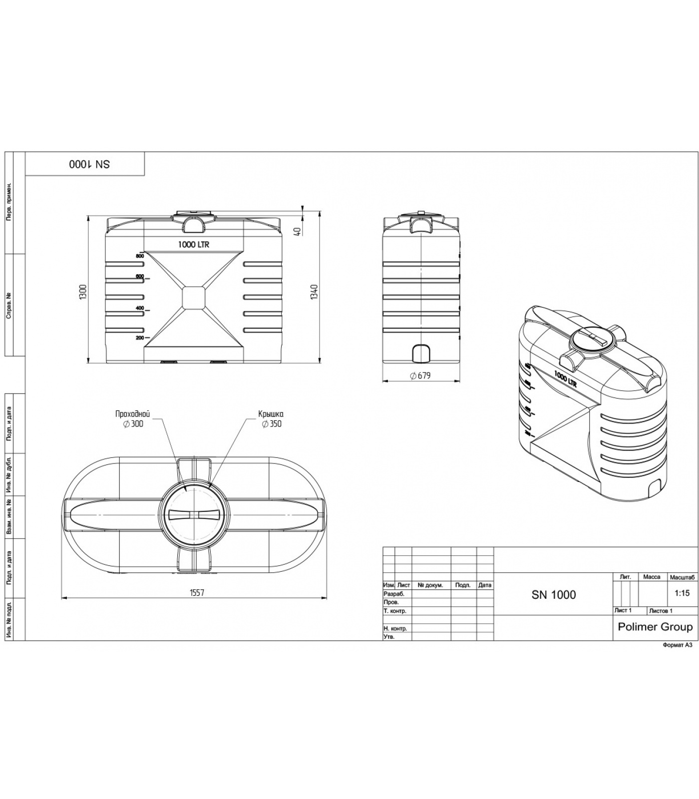 | Объем, л | 1 000 |