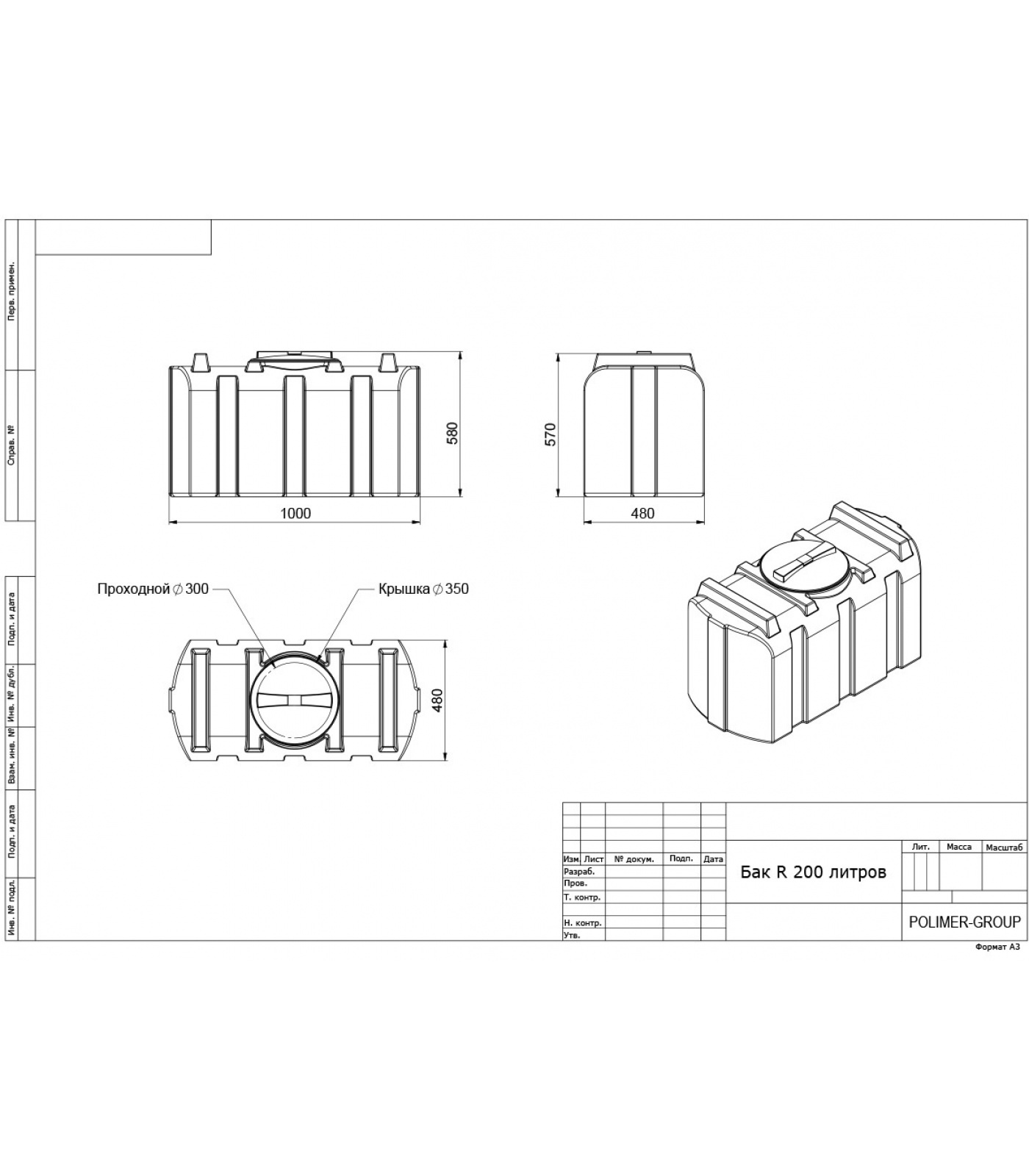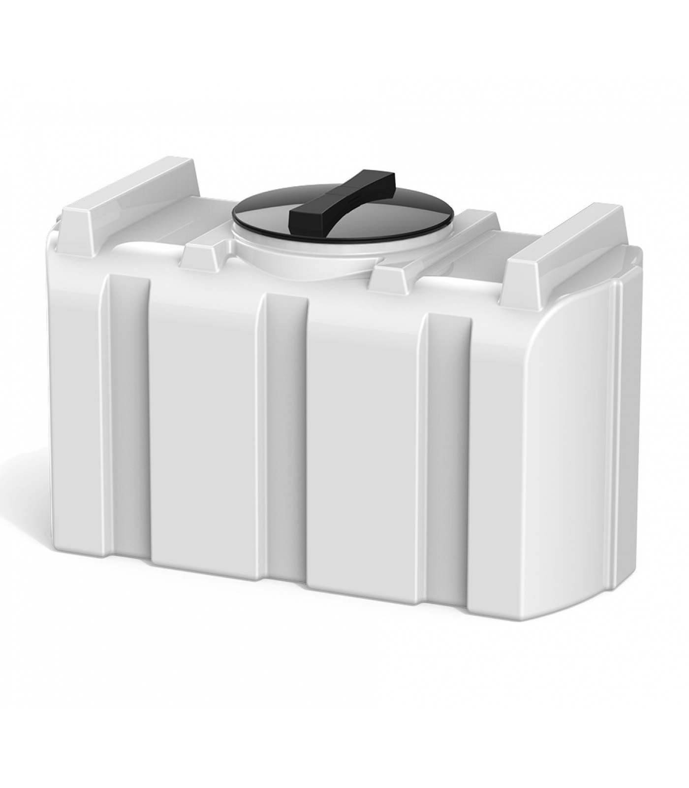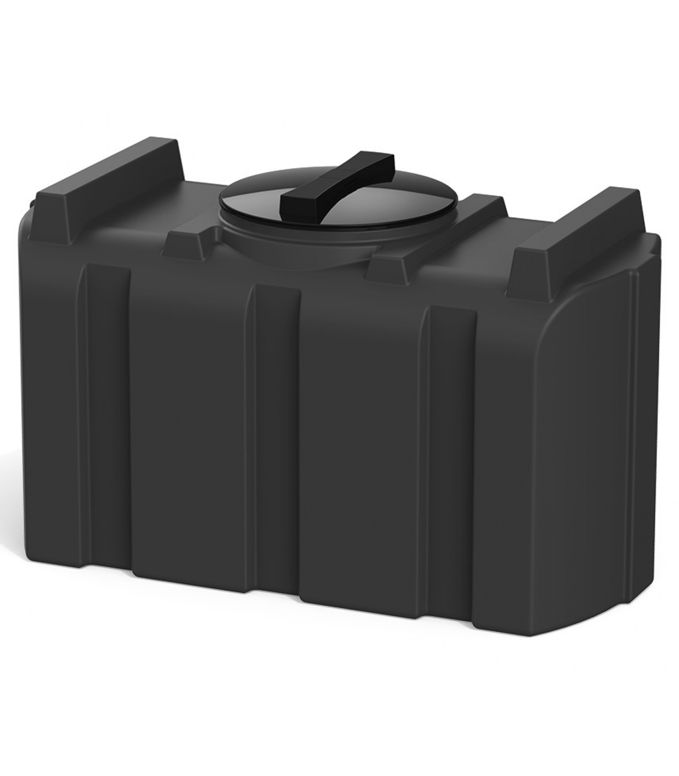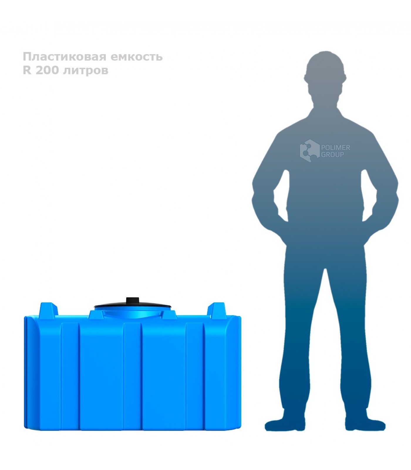 Емкость R 200 – это прямоугольный пластиковый резервуар объемом 200 л, предназначенный для хранения питьевой воды, технических жидкостей, а также дизельного топлива (черный цвет).