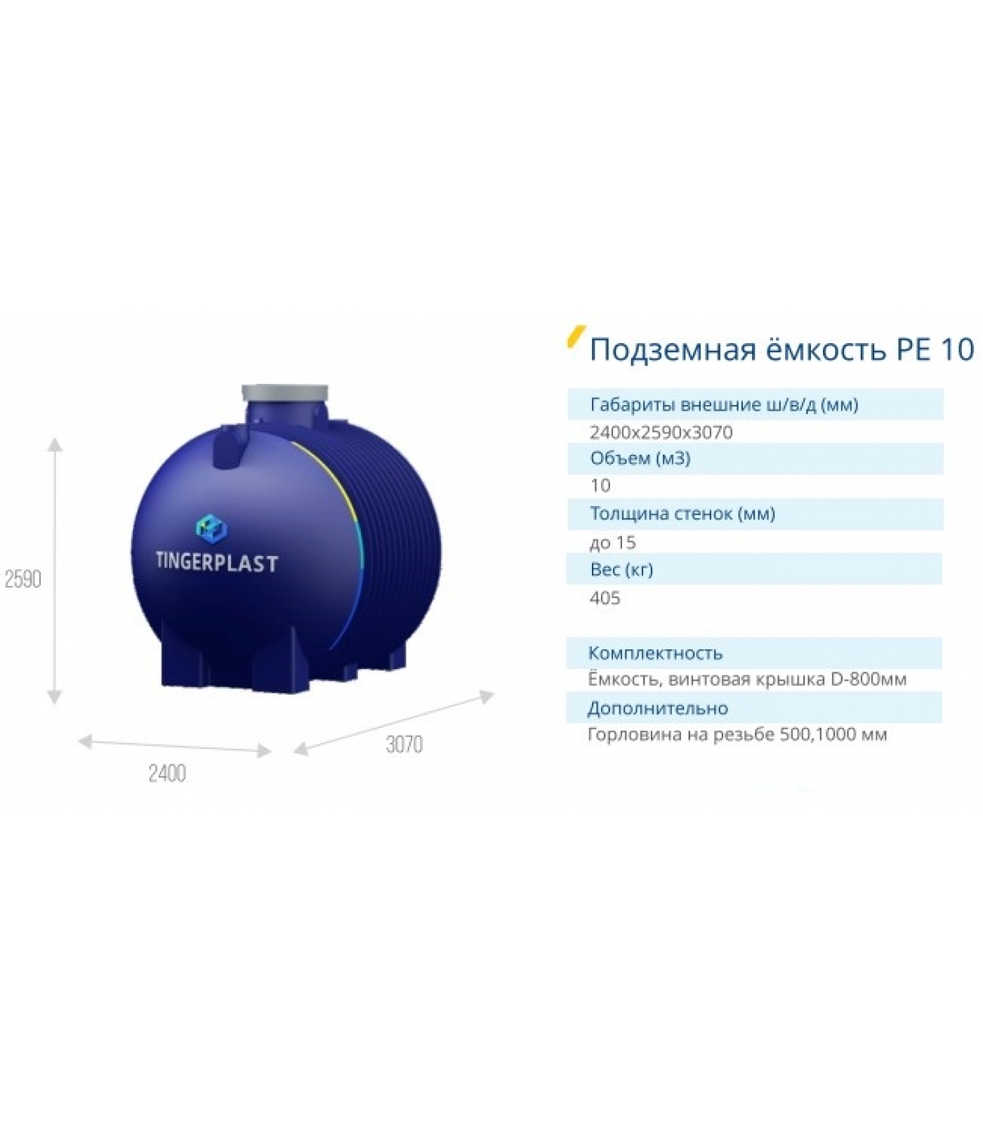 Емкость 10000 литров подземно-надземная Tingerplast, синяя PE 10