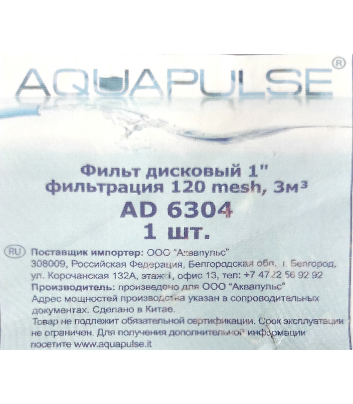 Aquapulse AD 6304 Фильтр дисковый с наружной резьбой 1''