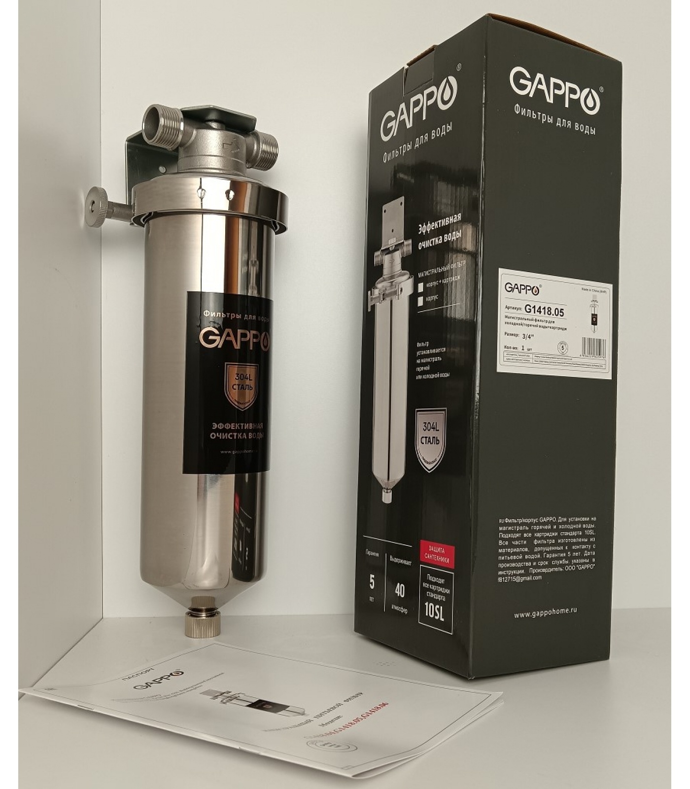 Фильтр магистральный GAPPO SL10, 3/4" сталь нержавеющая 304L + картридж полипропен