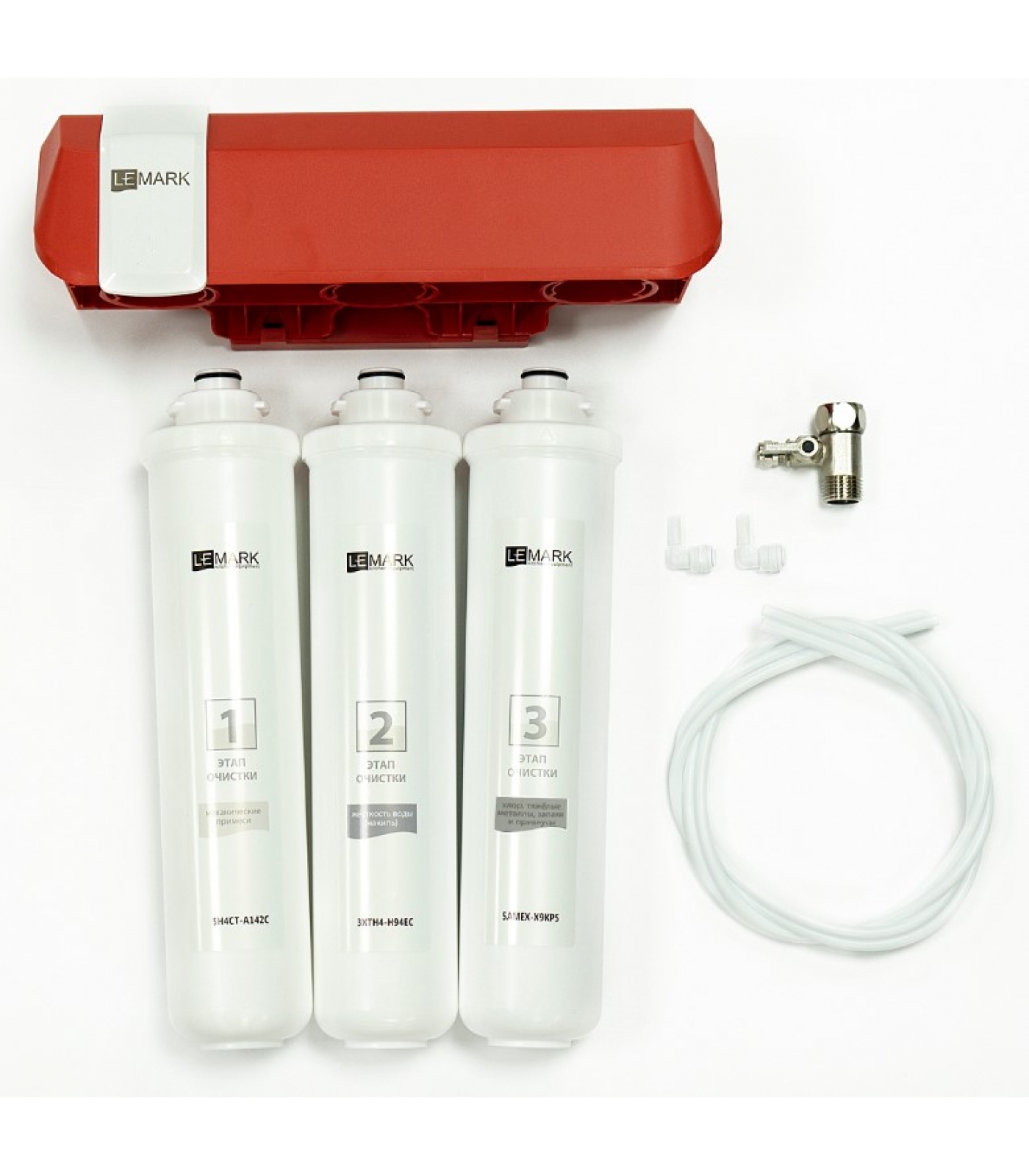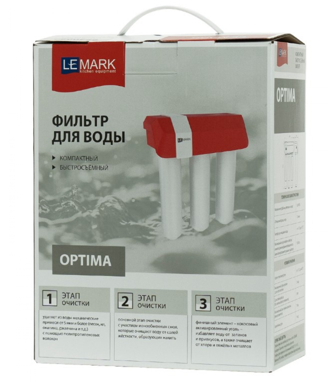 Фильтр под мойку Lemark OPTIMA трехступенчатый, от соли жесткости и хлора, быстросъемный
