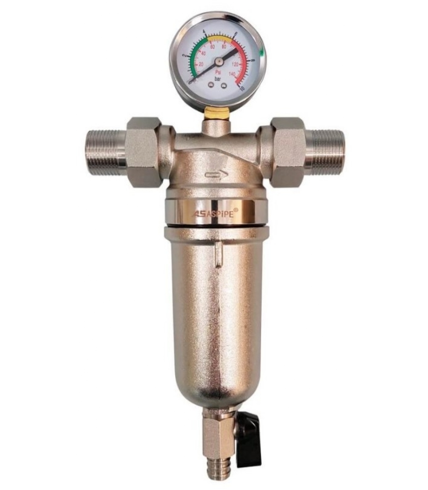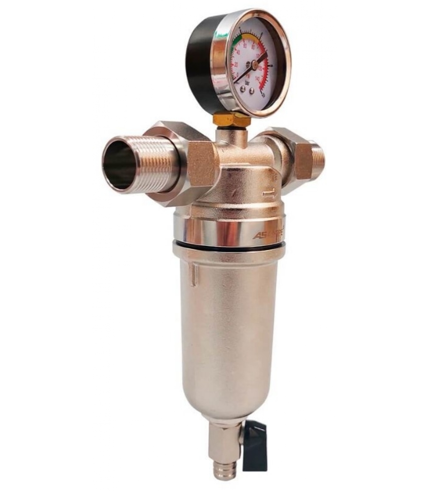 Фильтр с манометром 3/4" Aspipe для горячей воды, колба латунь