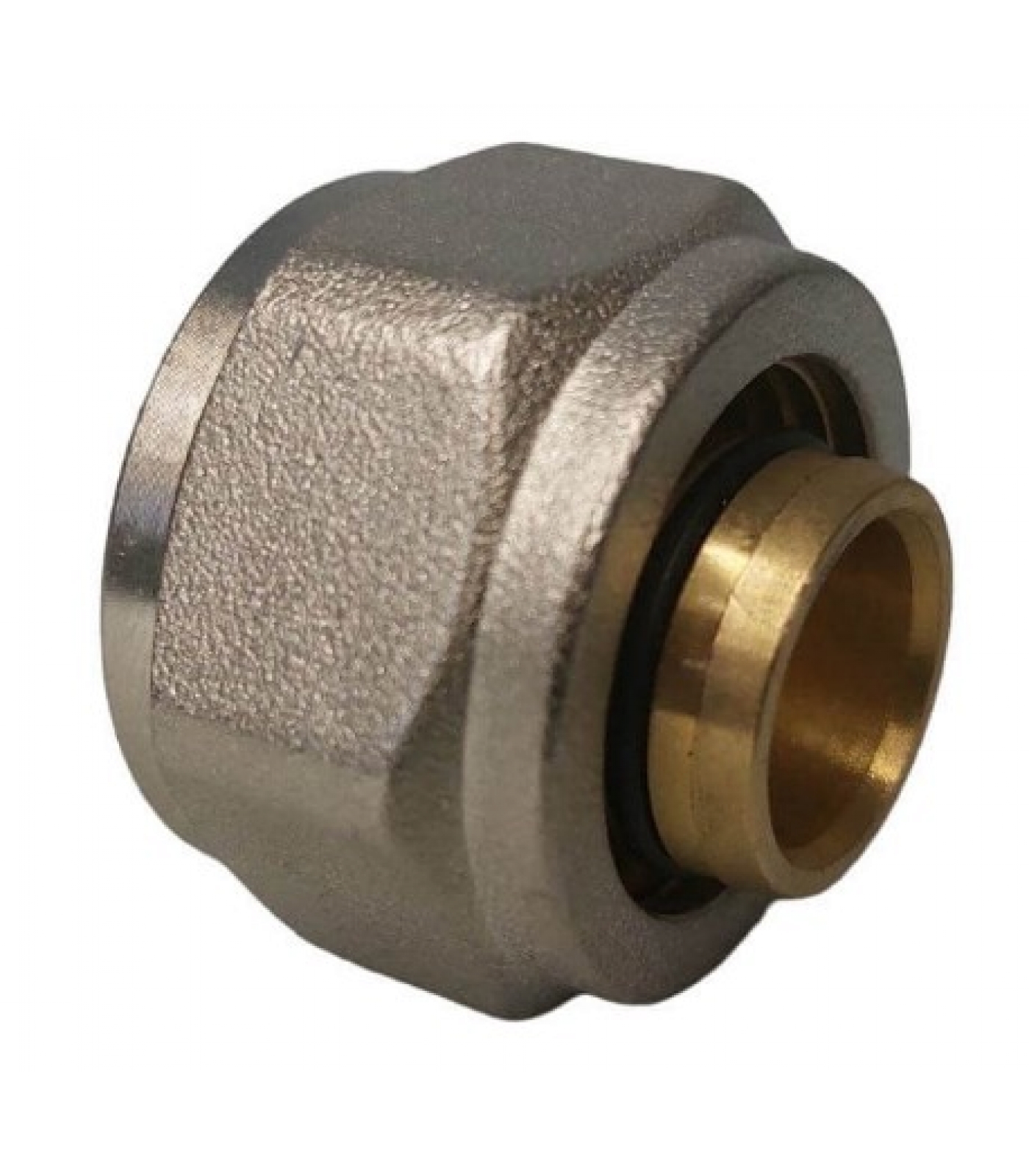 Фитинг предназначен для осуществления перехода с резьбового соединения коллектора на обжимное для металлопластиковых труб и труб сшитого полиэтилена.