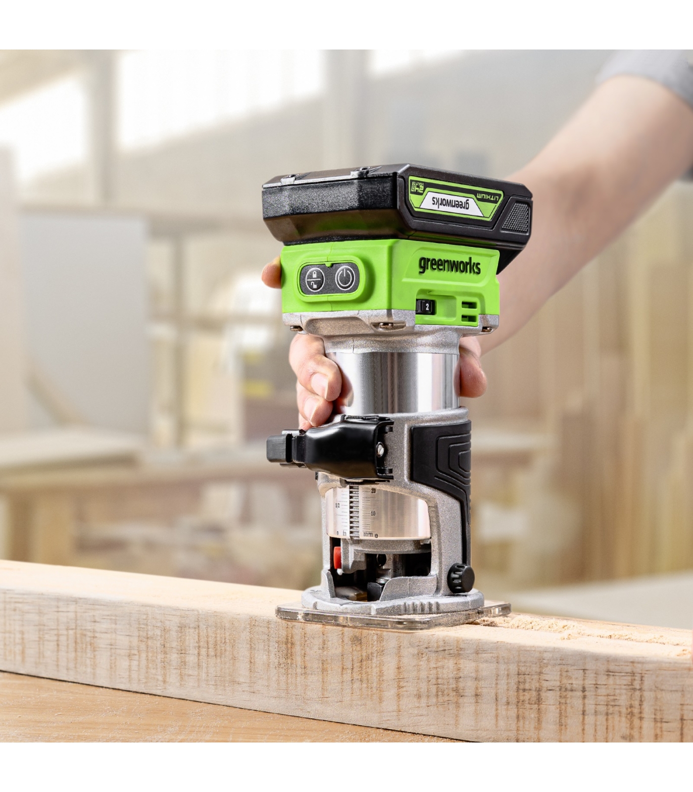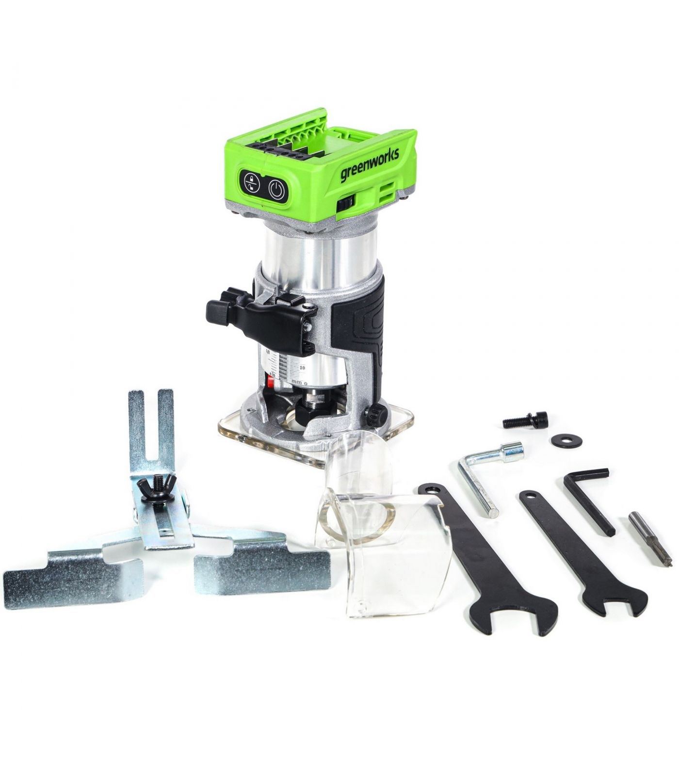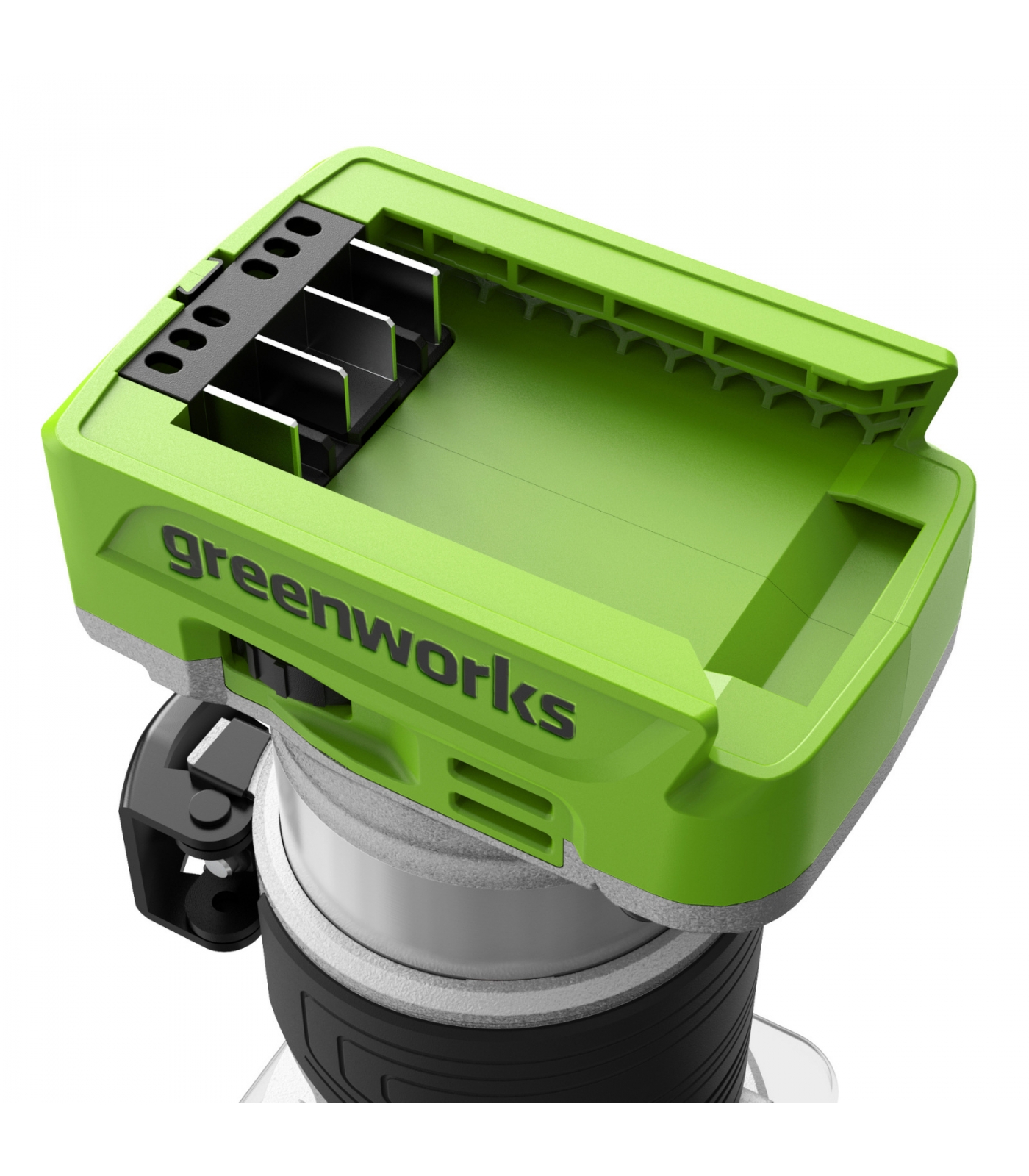 Фрезер кромочный Greenworks G24RO, 24V, бесщеточная, 10000-30000 об/мин, 6 / 6,5 / 8 мм, ход 20 мм, без АКБ и ЗУ (3502507)