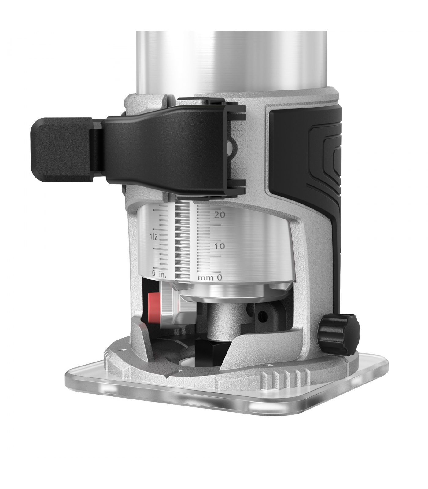 Для настройки инструмента под выполняемую задачу фрезер имеет регулировочное колесо с пятью (5) положениями, которым пользователь регулирует частоту вращения фрезы в диапазоне 10 000–30 000 об/мин.