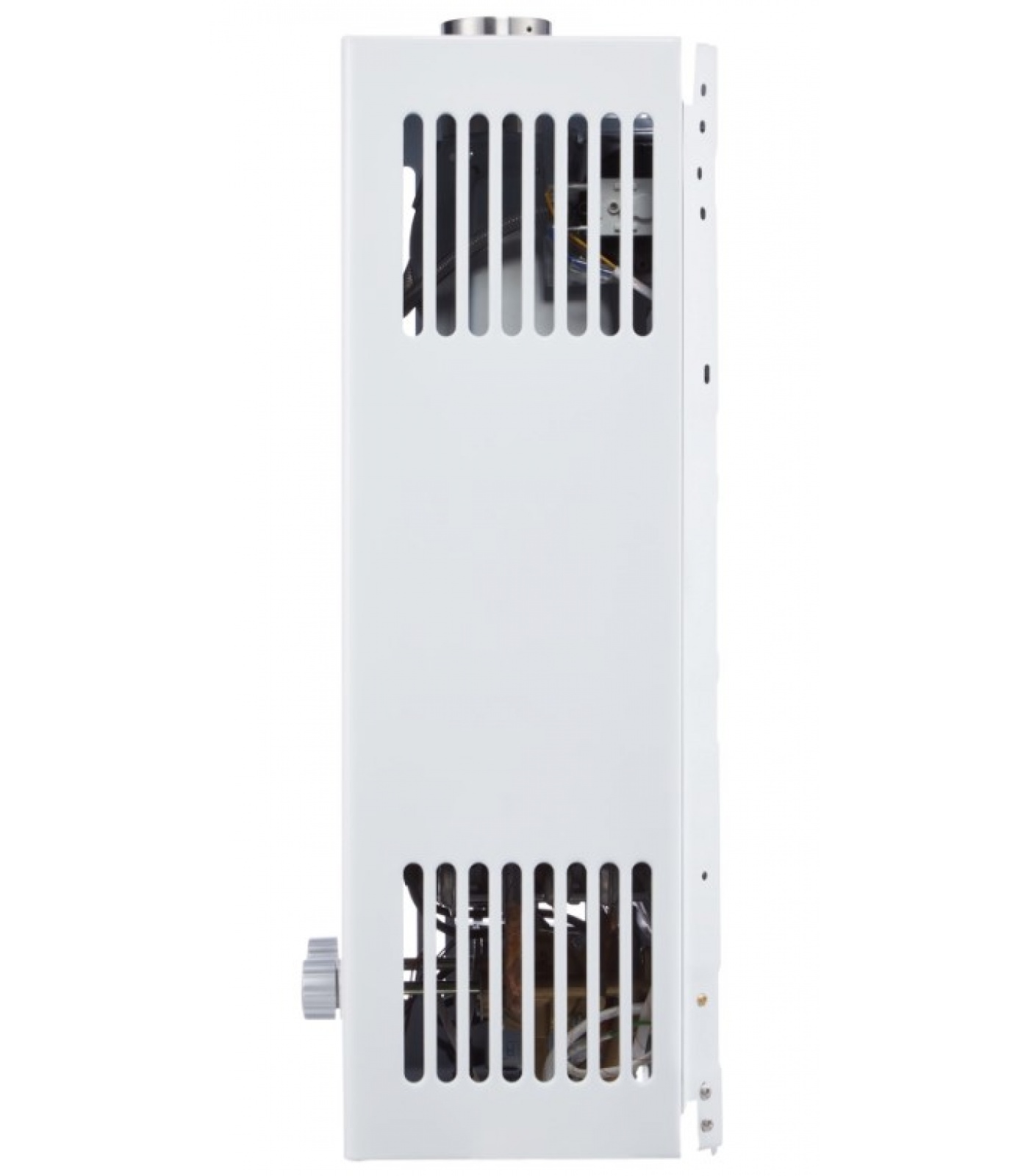 Четыре уровня контроля безопасности: датчик тяги, защитный термостат, гидравлический предохранительный клапан и контроль ионизации пламени – обеспечат надежную и безопасную работу водонагревателя. Для защиты лицевой панели от перегрева и прогорания прибор дополнительно оснащен металлической пластиной.