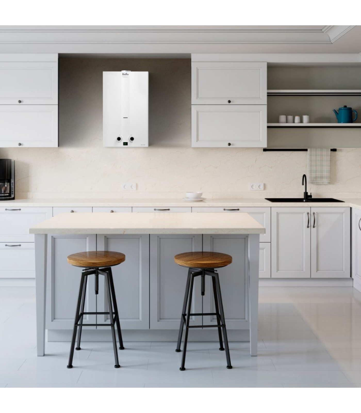 Классический белый глянцевый цвет и современный дизайн позволят прибору органично вписаться в интерьерный стиль любого помещения, делая его естественной частью как кухонного пространства, так и в ванной комнаты.