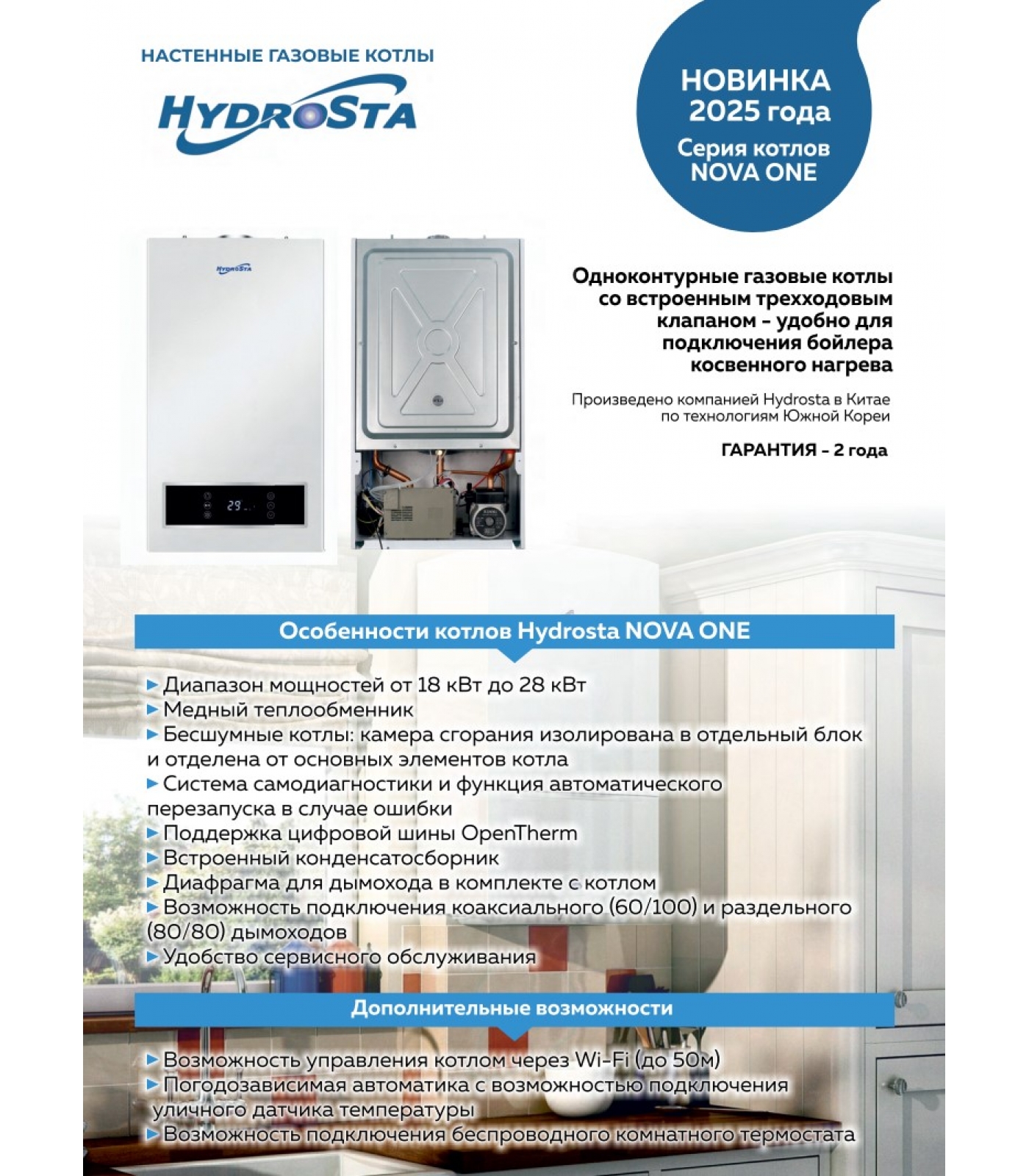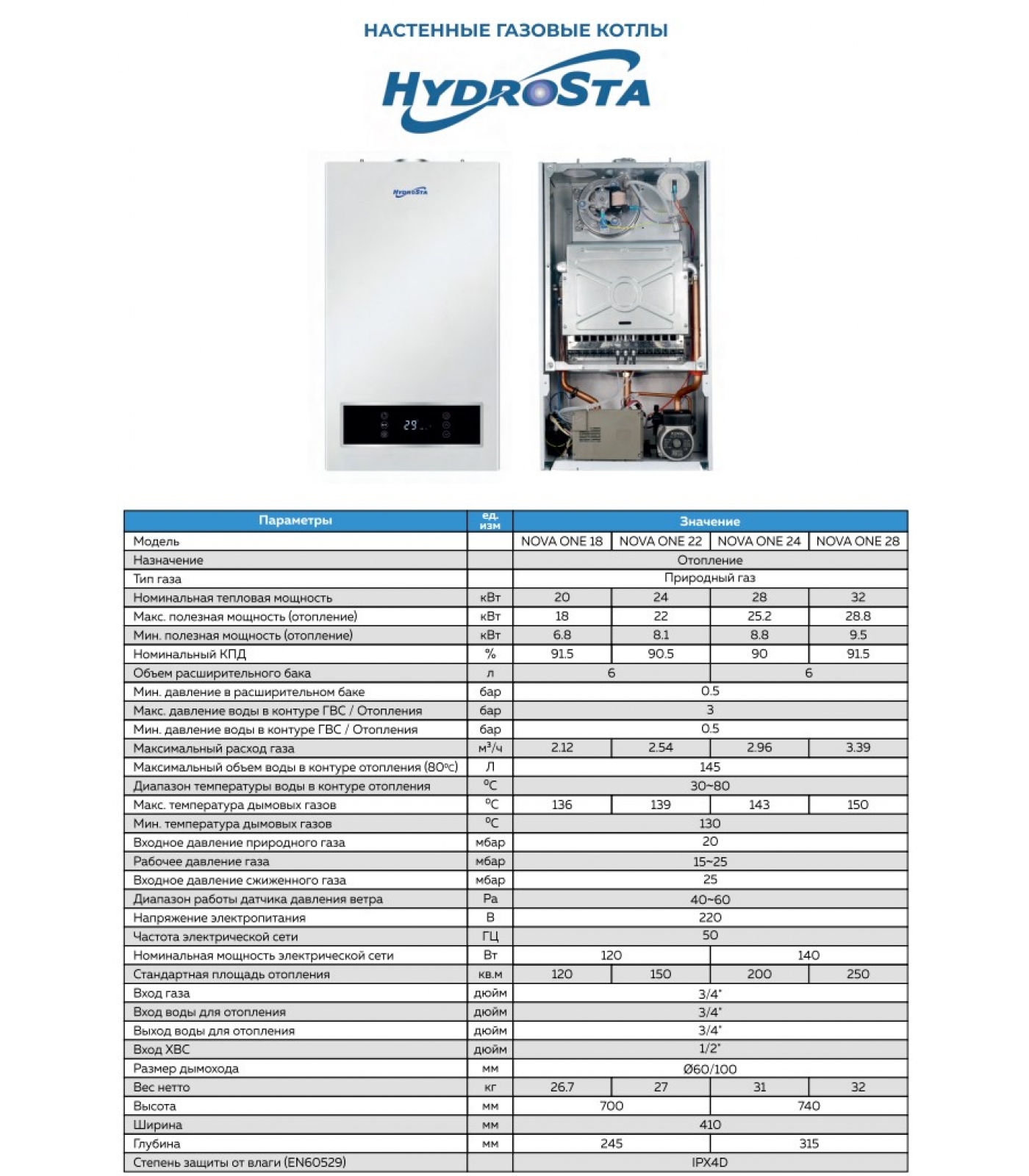 Газовый котел 28кВт Hydrosta NOVA ONE 28, одноконтурный, настенный, изолированная камера сгорания