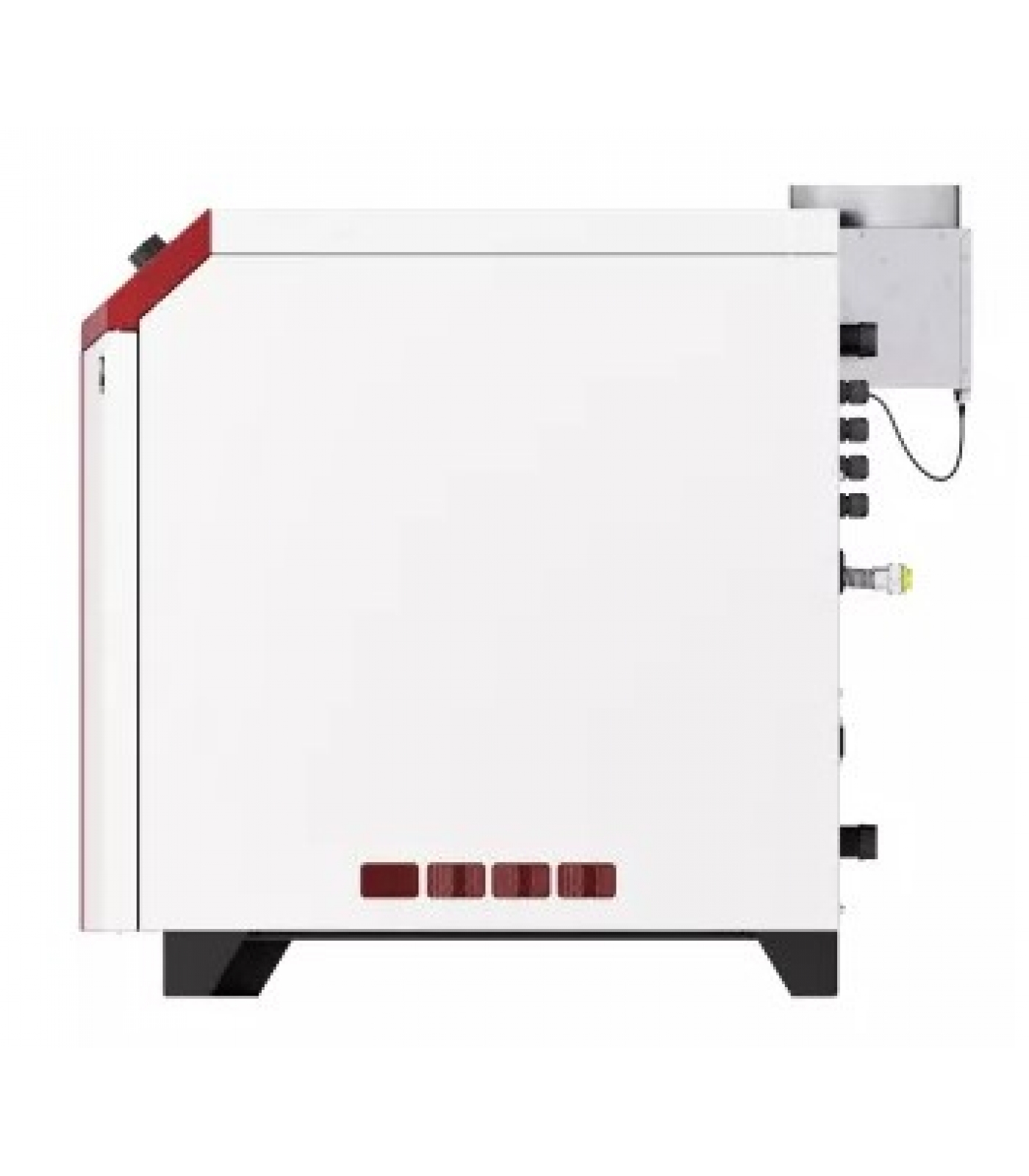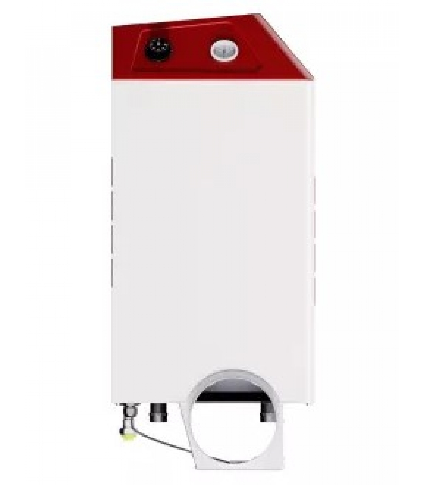 На задней поверхности котла расположены резьбовые патрубки, с помощью которых котел подключается к системе отопления. Регулирование и поддерживание заданной температуры обеспечивается терморегулятором, модулирующим пламя основной горелки.