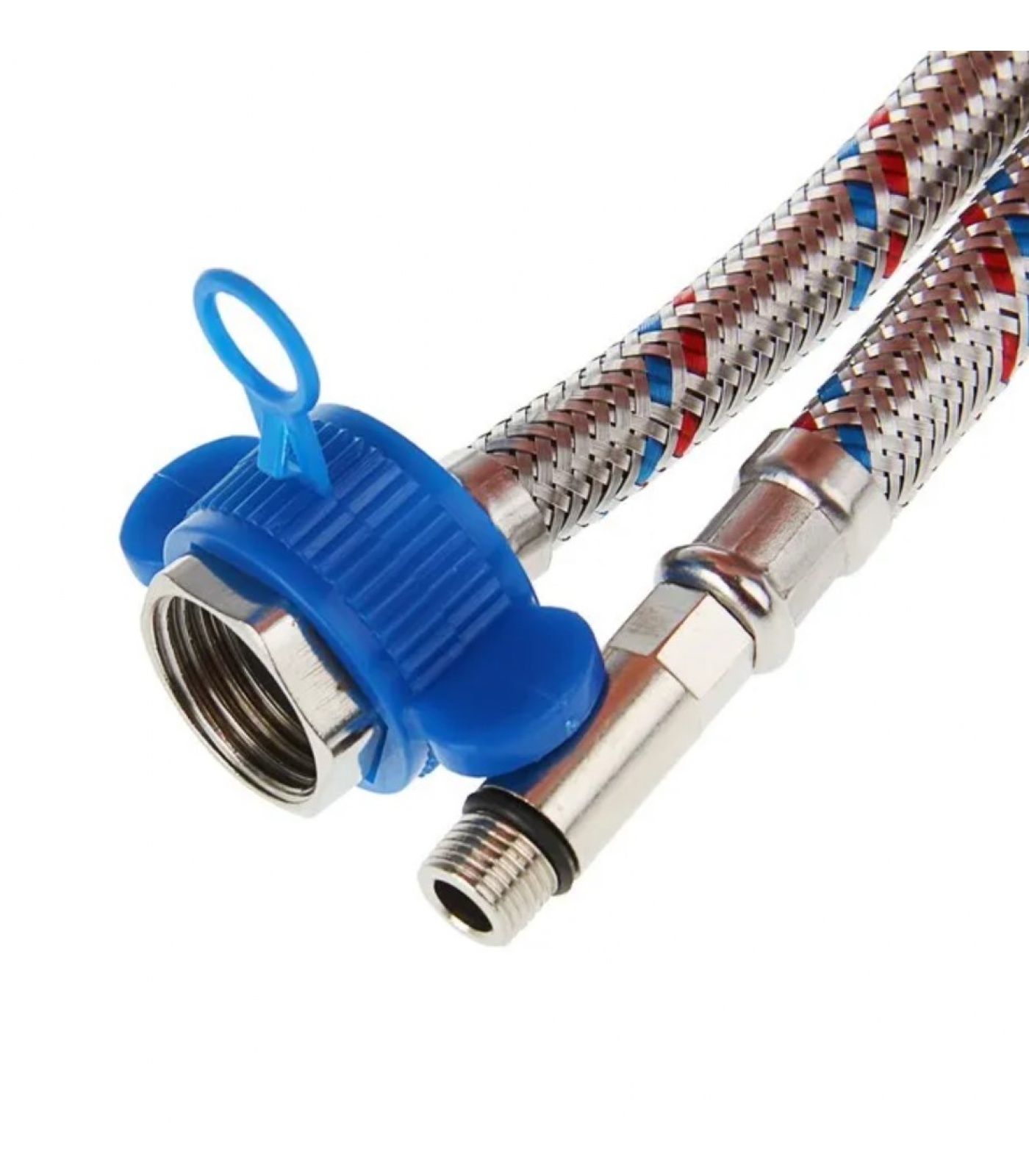 Гибкая подводка для воды в оплетке из нержавеющей стали для подключения бытового смесителя со штуцером М10 L=35 мм и внутренней трубной резьбой (ВР)