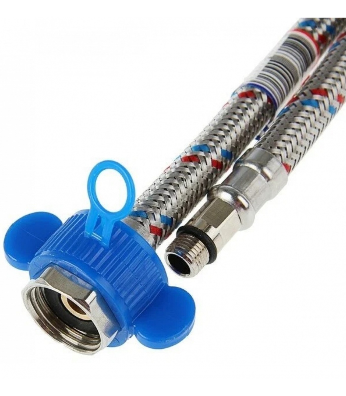 Гибкая подводка для воды в оплетке из нержавеющей стали для подключения бытового смесителя со штуцером М10 L=18 мм и внутренней трубной резьбой (ВР)