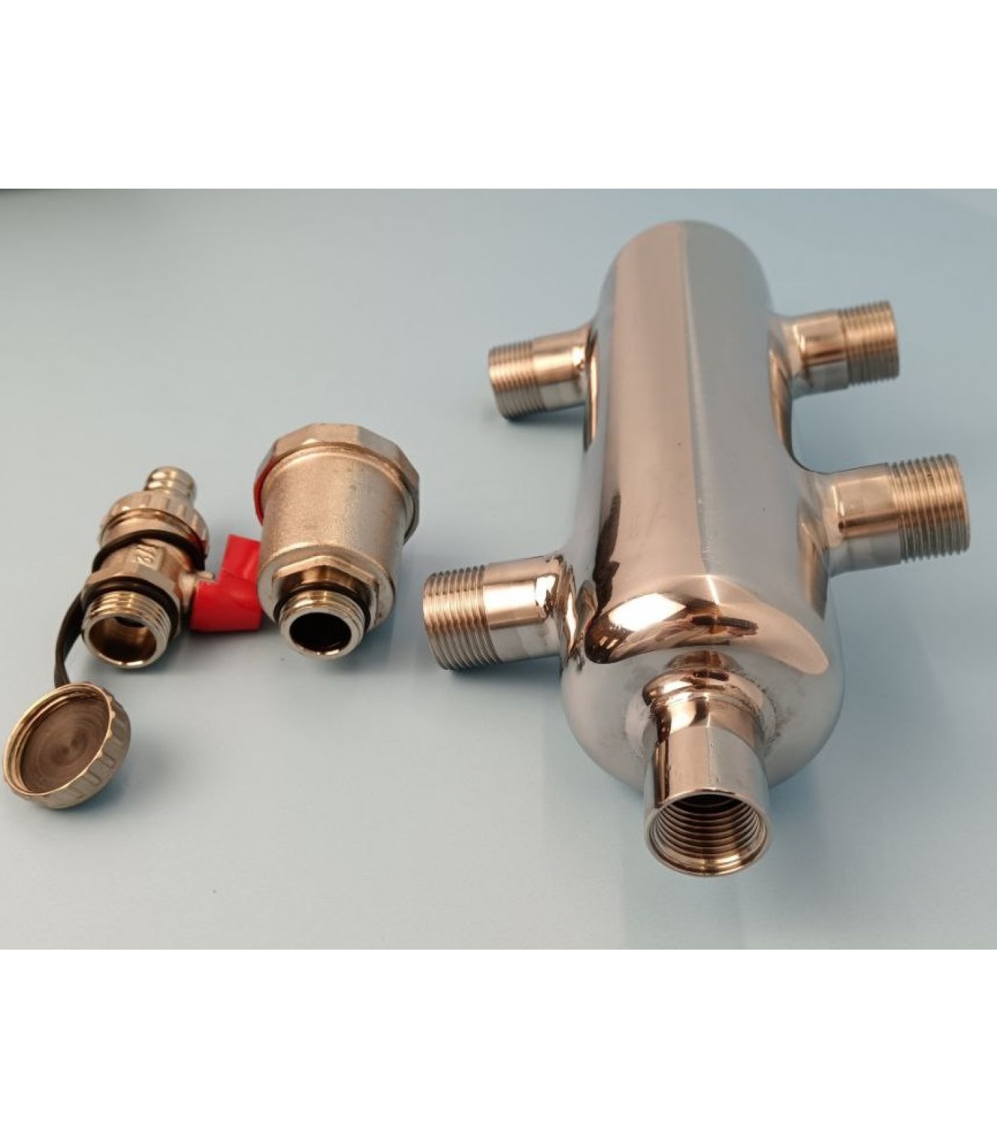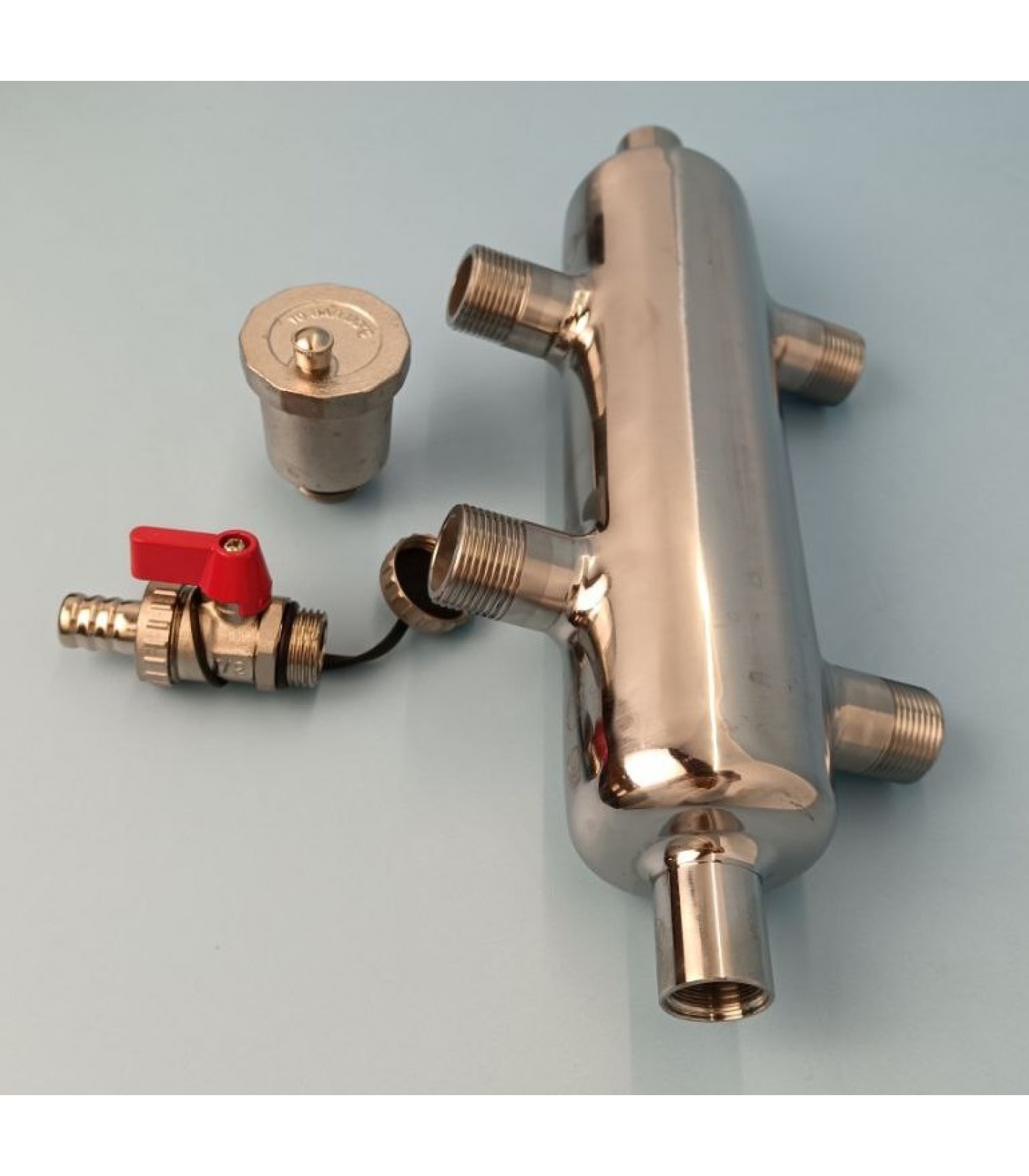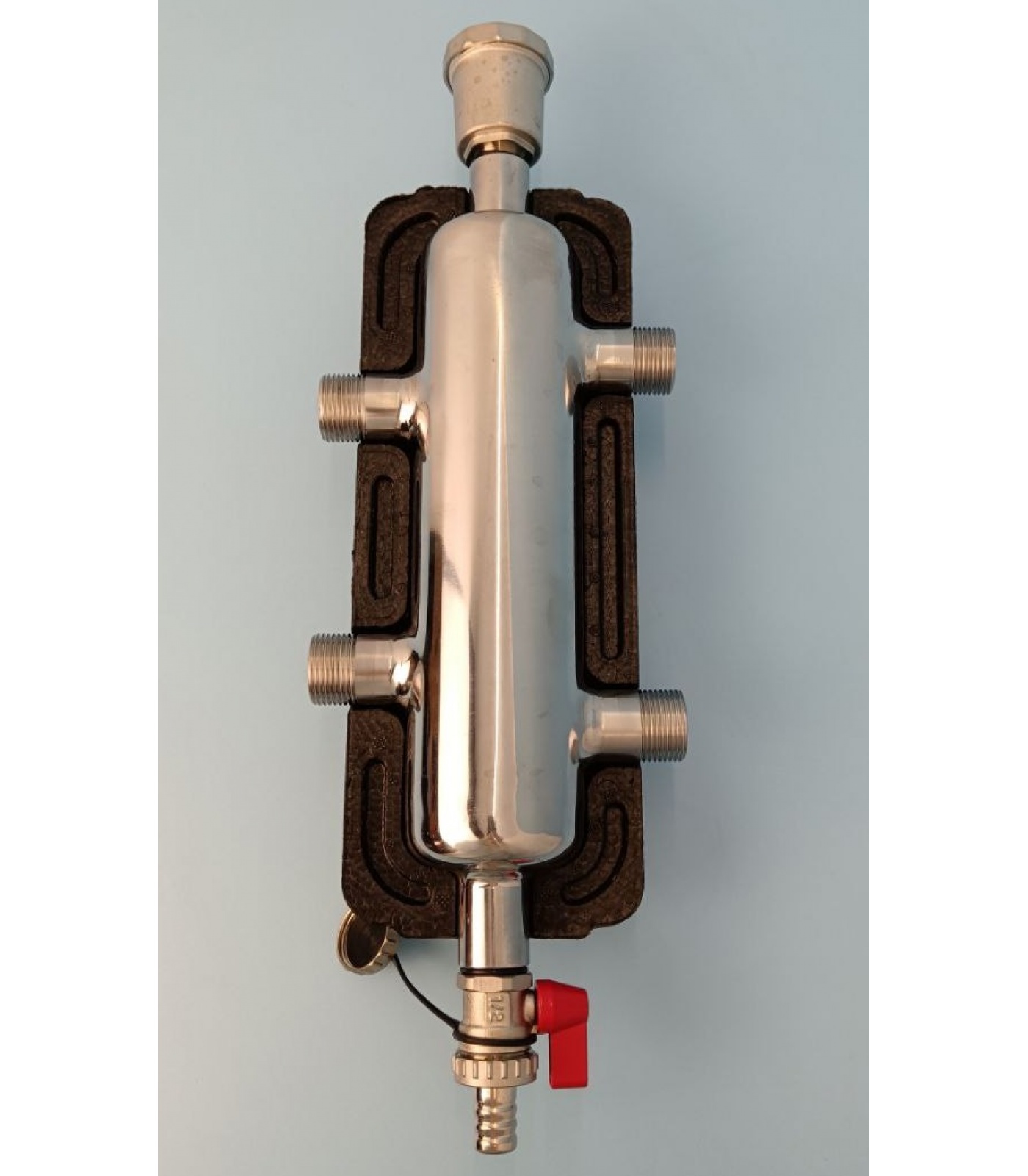 Основная функция заключается в гидравлическом разделении первичного контура, идущего от отопительного котла, и вторичных контуров циркуляции, которые распределяют отопительные ветви с переменным расходом.