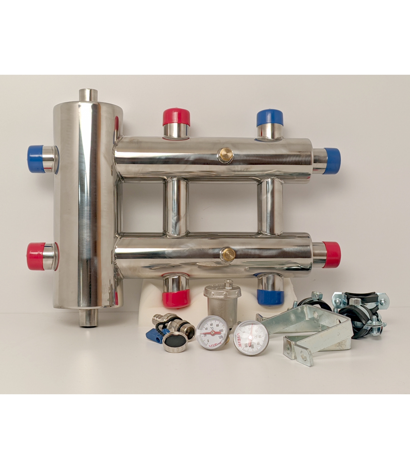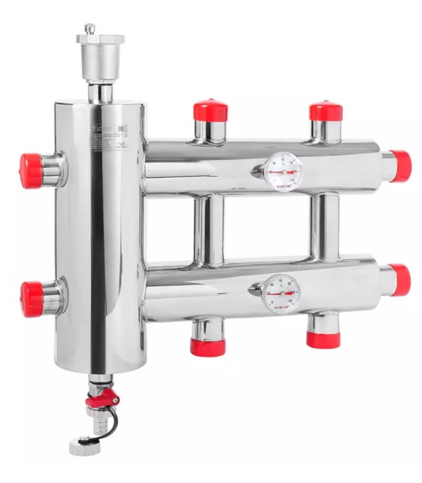 Гидравлический разделитель с коллектором Vieir 3 выхода, горизонтальный, 60 кВт, нержавеющая сталь H