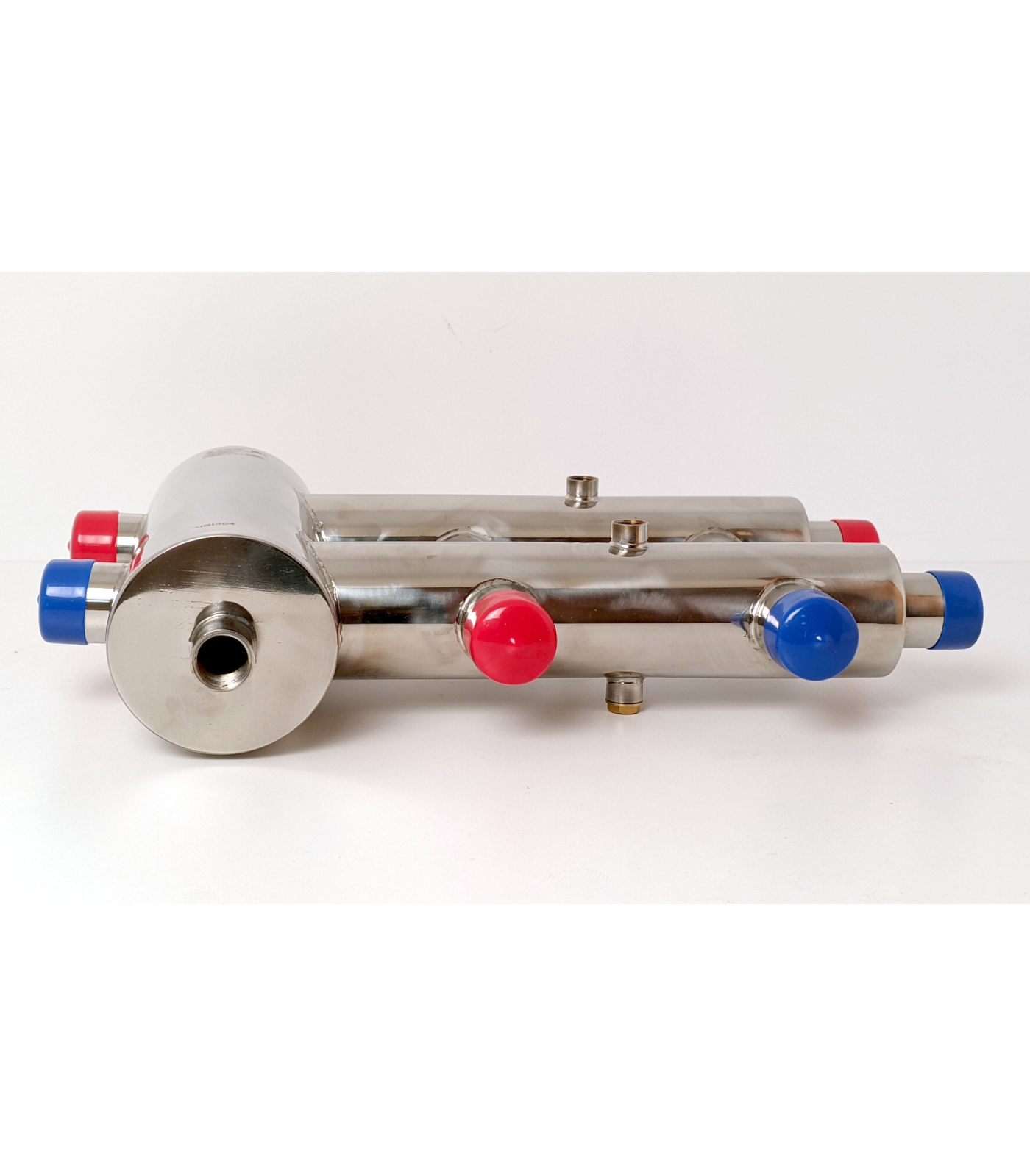 Муфты под термометры с резьбой 1/4" расположены с обеих сторон коллектора, что позволяет менять расположение гидрострелки и направление контуров обратки на контуры потребителей.