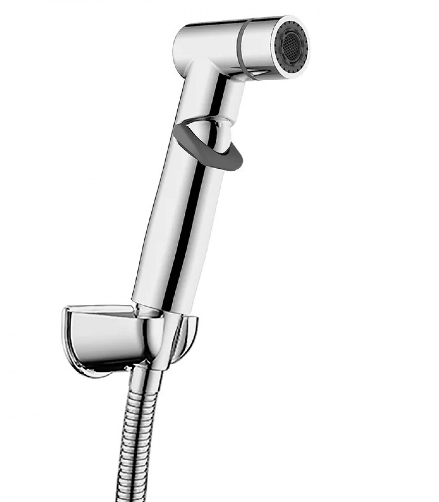 Набор с гигиеническим душем имеет в комплекте настенный держатель и шланг 100 см с оплеткой из нержавеющей стали.