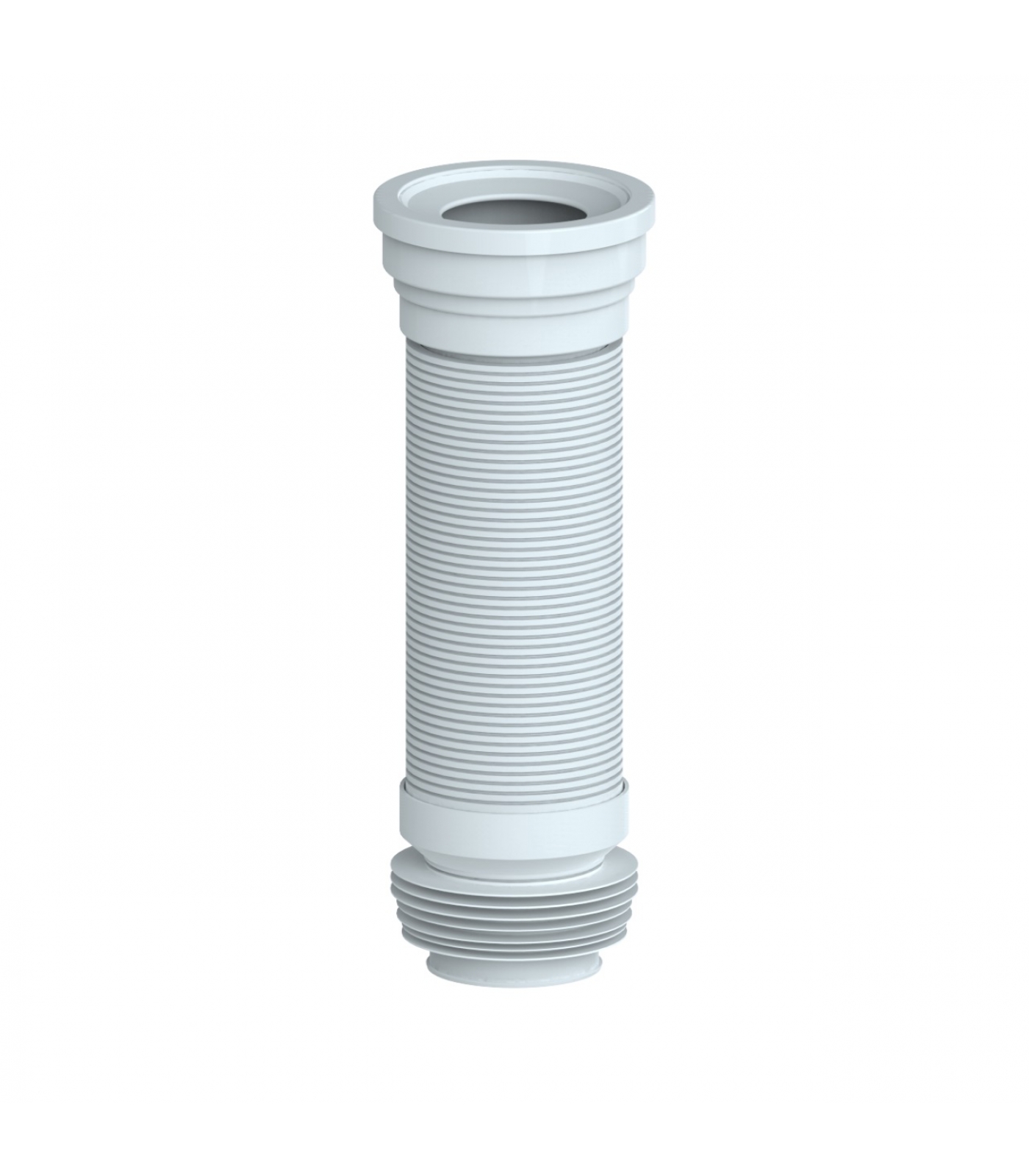 Край оформлен манжетой, которая облегчает процесс соединения с трубами и выпускным отверстием унитаза. Конструкция стенок, которая и дала название этому изделию, позволяет увеличивать размеры переходника до определенных пределов. Обычно длина рукава варьируется в пределах 23-50 см. Диаметр манжеты, которую присоединяют к унитазу, составляет 13,4 см снаружи и 7,5 см внутри. Конец, который устанавливают на канализационную трубу, обычно имеет отверстие с диаметром 11 см. Главные преимущества гофры, предназначенной для унитаза, это невысокая цена и простой монтаж. Этот элемент часто используют в тех случаях, когда диаметр выпускного отверстия унитаза и канализационной трубы не совпадает. Гофра очень удобна, если положение унитаза необходимо изменить, сместив его относительно места входа в канализацию. Также ее часто используют как временный элемент, когда при ремонте унитаз еще не закреплен, но им необходимо пользоваться. Однако гофру нельзя назвать идеальным выбором, это не самый прочный элемент. Например, если в унитаз случайно упадет кусок керамической плитки или острый осколок стекла, гофрированное соединение может легко получить повреждения. Если гофра расположена под слишком большим углом или неправильно изогнута, в ней часто возникают засоры, а слишком длинный элемент иногда провисает под воздействием своего содержимого. Никогда не следует размещать гофру внутри стены, она подходит только для открытого монтажа.