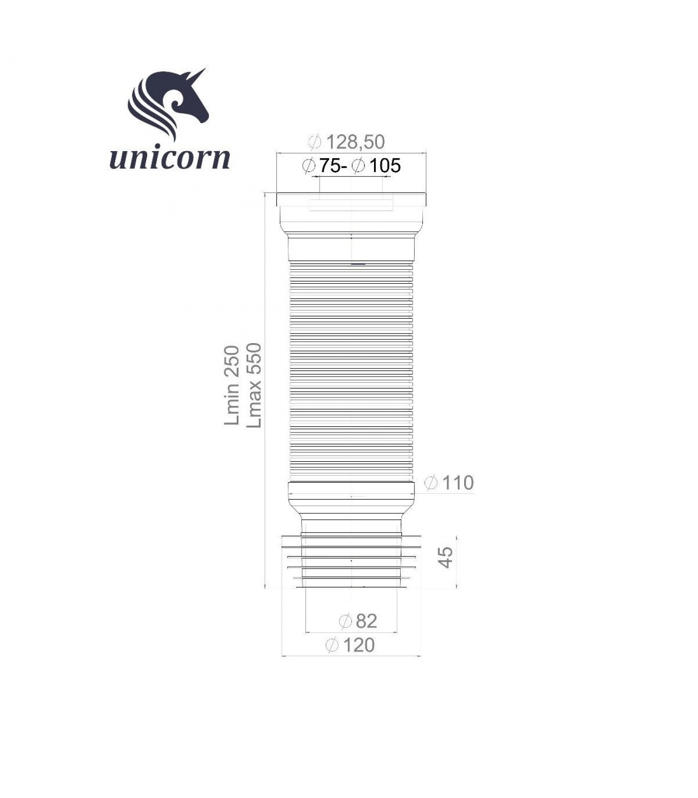 Гофра Т550 для унитаза UNICORN 220/520 арм.