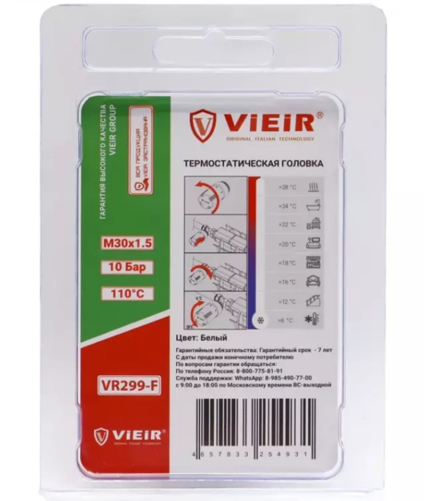 Головка термостатическая жидкостная Vieir 6-28C, M30X1,5, белая VR299-F