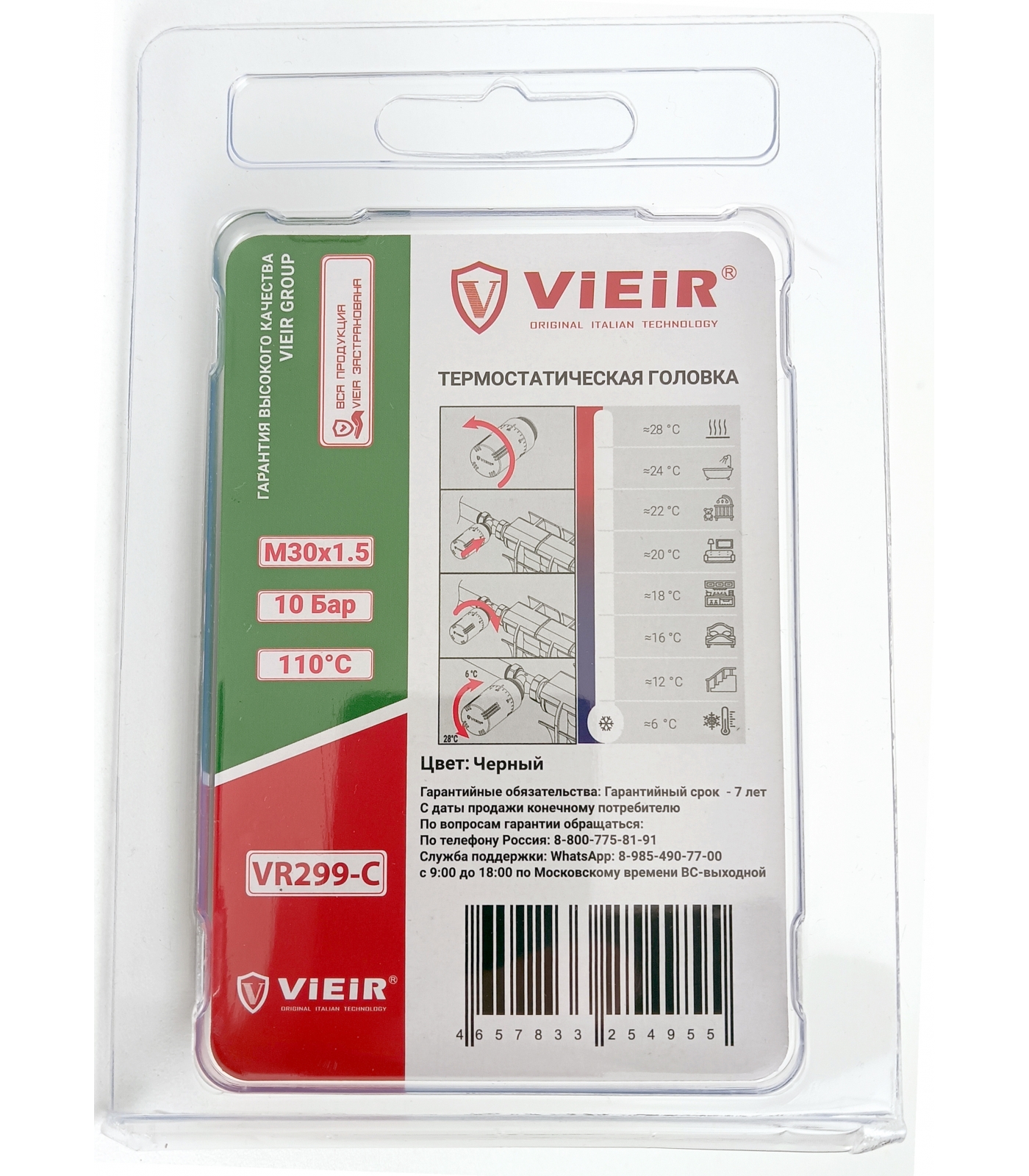 Головка термостатическая жидкостная Vieir 6-28C, M30X1,5, черная VR299-C