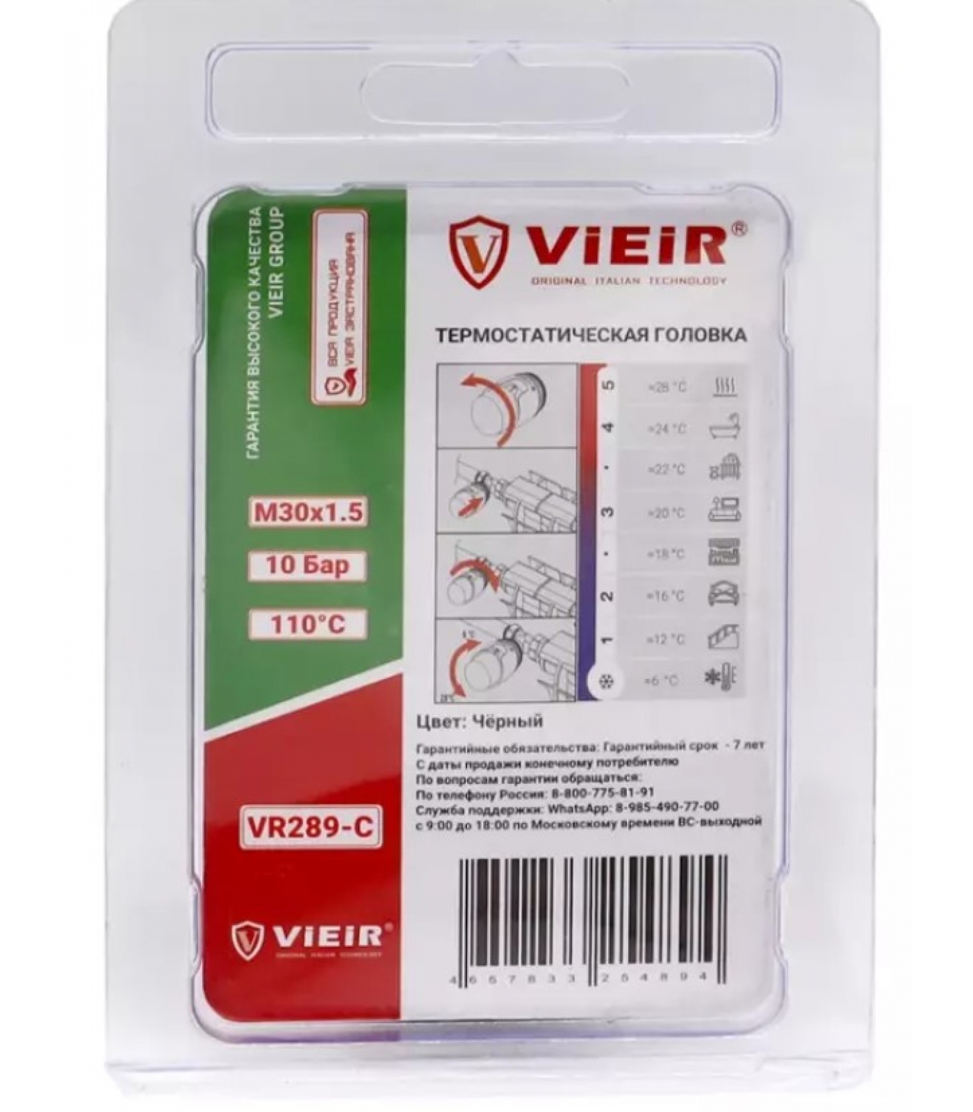 Головка термостатическая жидкостная Vieir 6.5-28C, M30X1,5, черная VR289-C