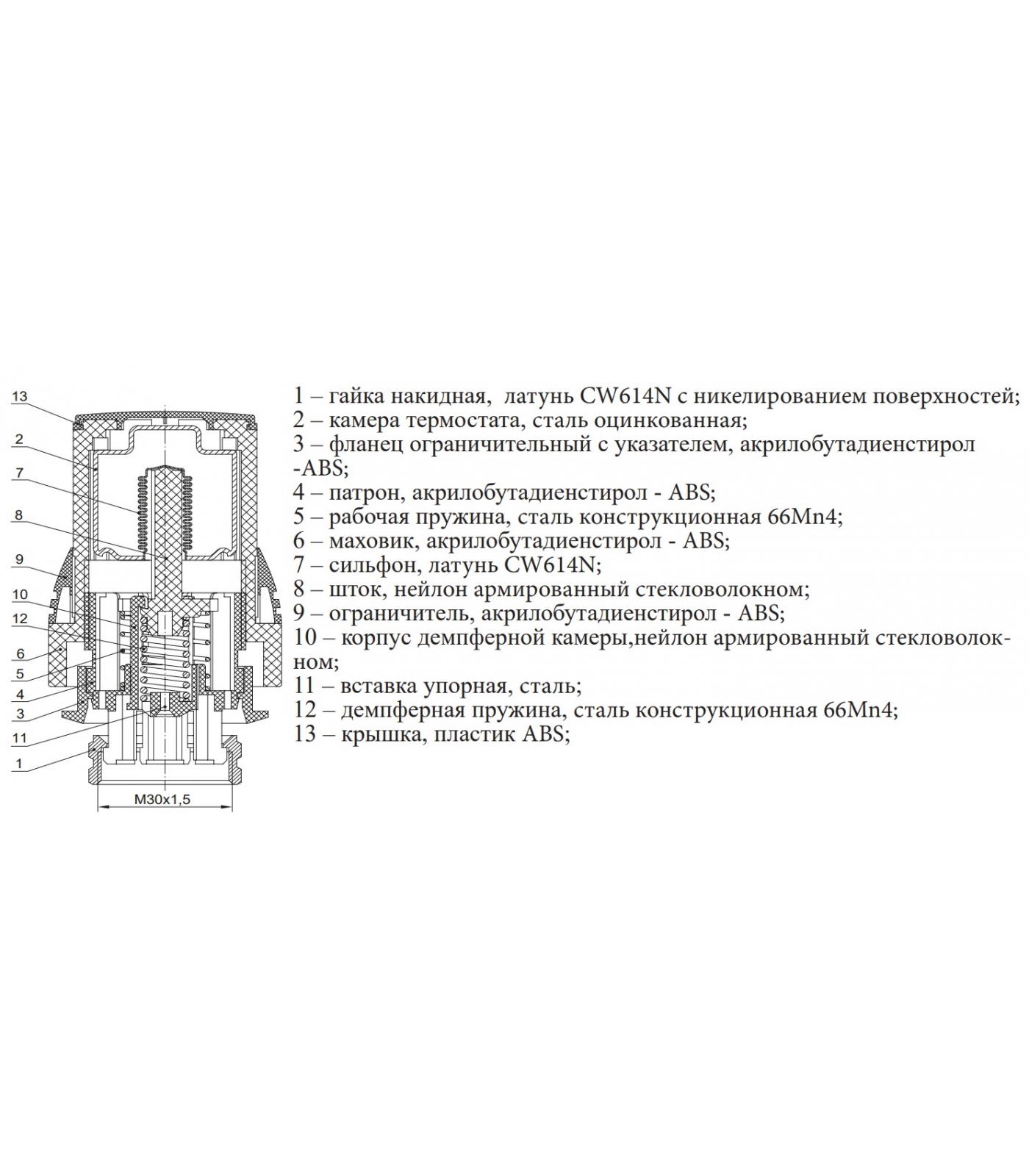 Термостатическим элементом головки служит камера термостата с внутренним сильфоном.