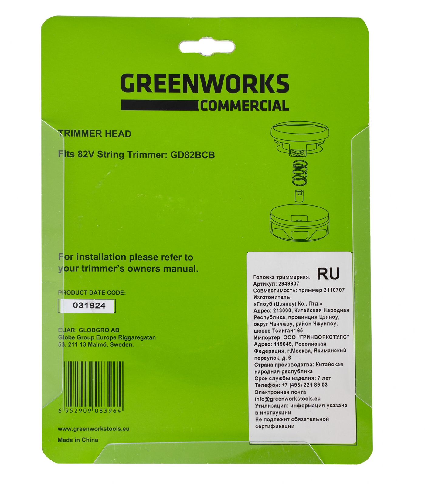 Головка триммерная с леской в сборе для триммеров Greenworks 82V, Арт, 2949907