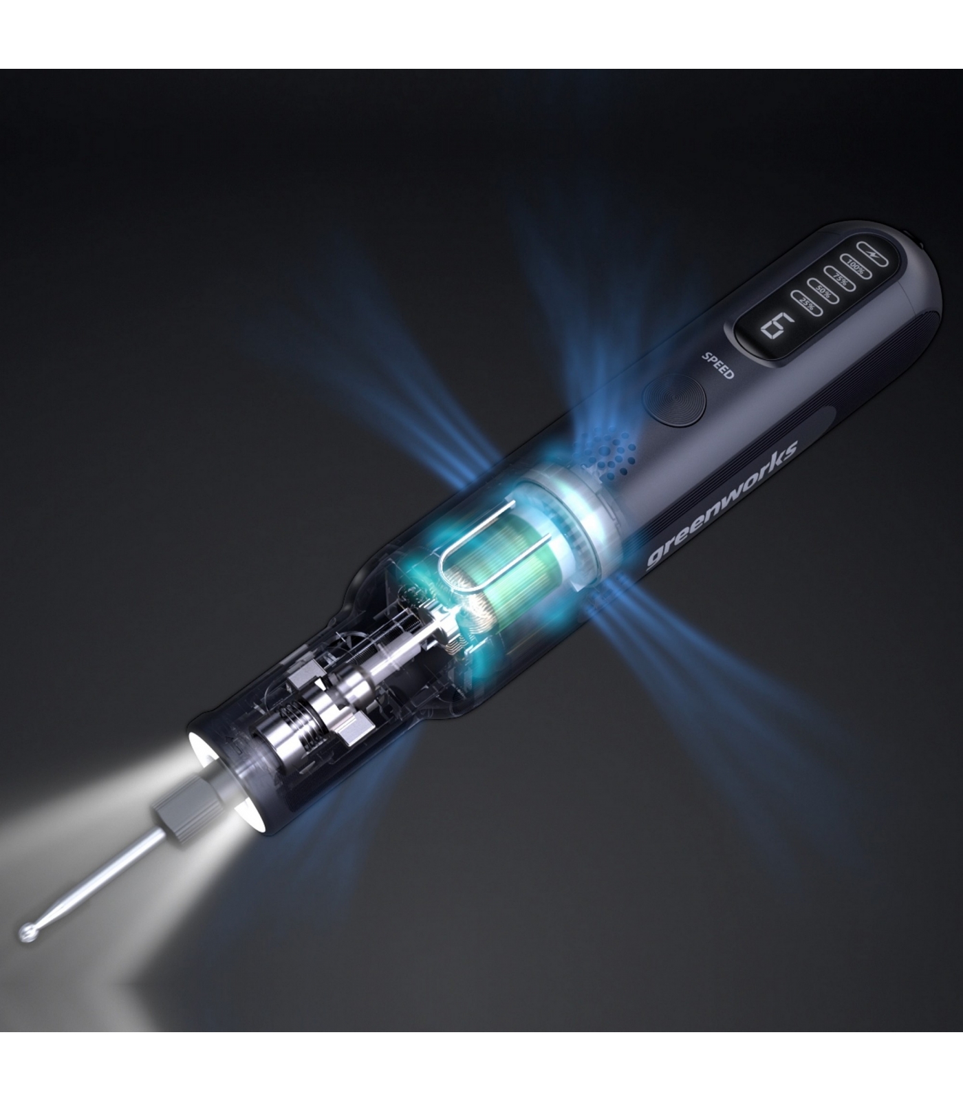 Гравер Greenworks GPT-8VRT, 8V,USB-C, 2,4/3,2 мм, 5000–30000 об/мин, LED, автоблокировка, оснастка 52 шт, кейс (3200707)