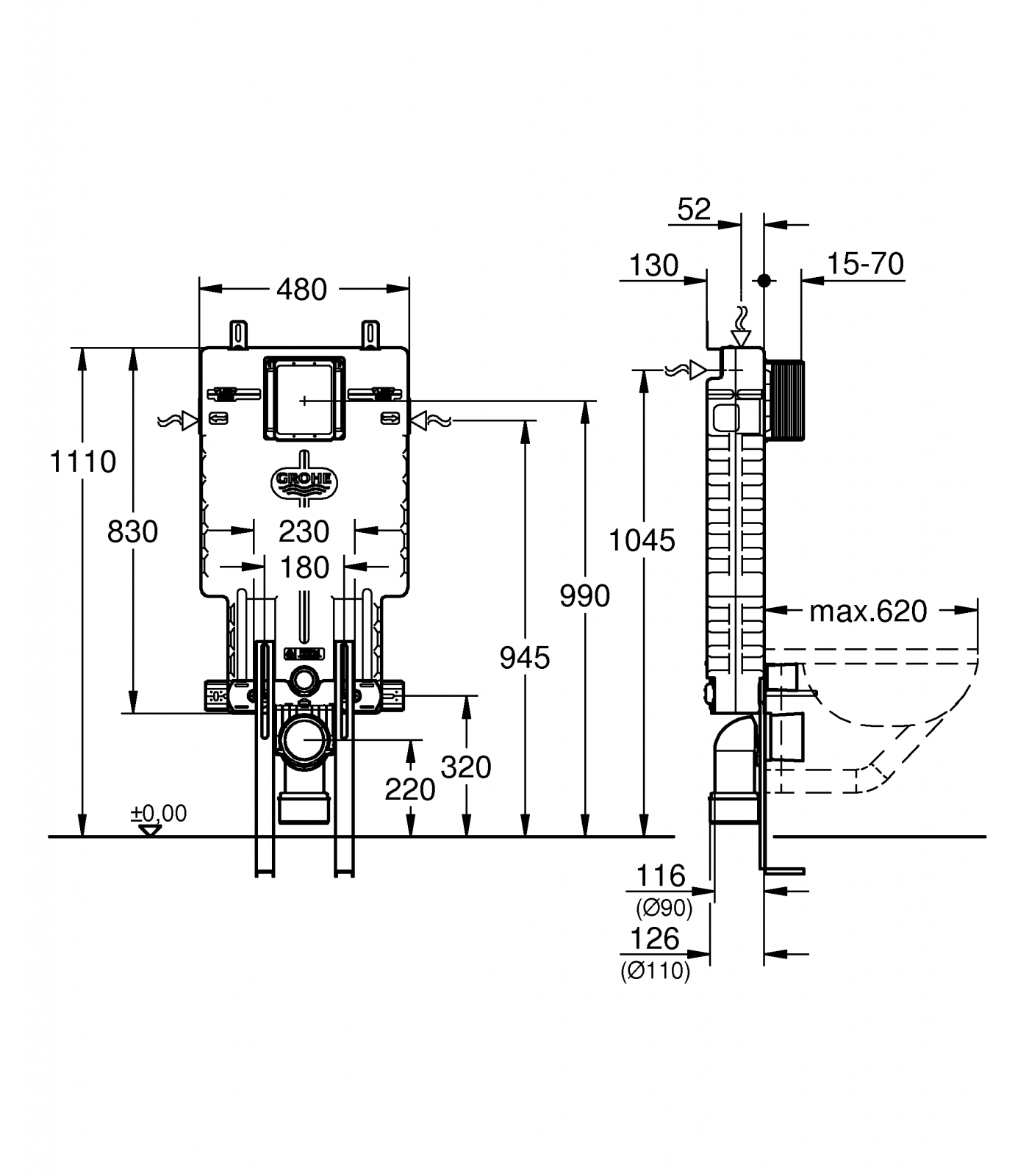 Инсталляционный комплект для унитаза GROHE Uniset для обмуровки с напольным креплением 38642001